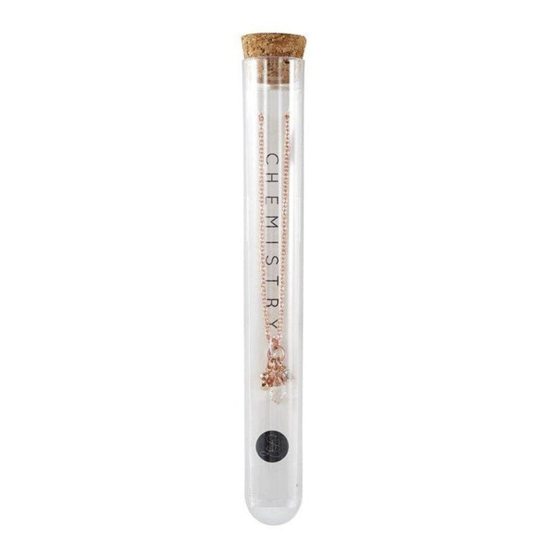 Looking for a unique gift for a chemistry enthusiast? This 18" Copper Chemistry Necklace with cut glass and hand-wrapped beads comes ready for gifting in a glass test tube, perfect for any science lover. Celebrate the beauty of metals and gems with this stunning necklace, featuring a copper theme and handmade design with zinc alloy, cut glass crystal gem stones, and hand-wrapped beads on an 18" gold chain.