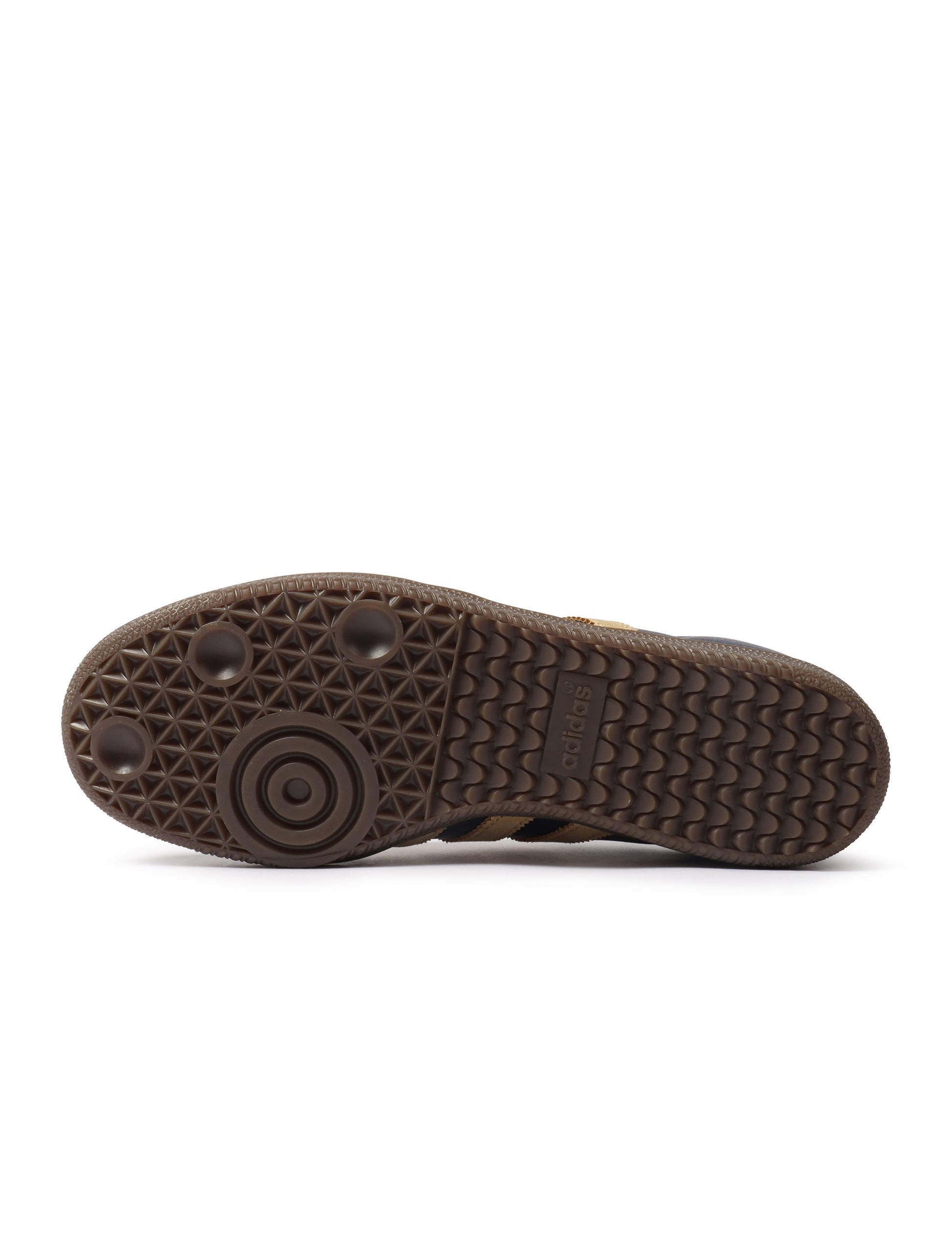 The adidas Samba continues its legacy as one of the most iconic sneakers ever made. Originally crafted for the soccer pitch, this modern edition brings a refined twist with a leather upper, suede overlays, and subtle tartan-inspired graphics on the sockliner and tongue loop. A gum rubber outsole anchors the look with classic traction, while the Shadow Navy and Golden Beige colorway blends heritage style with everyday versatility.