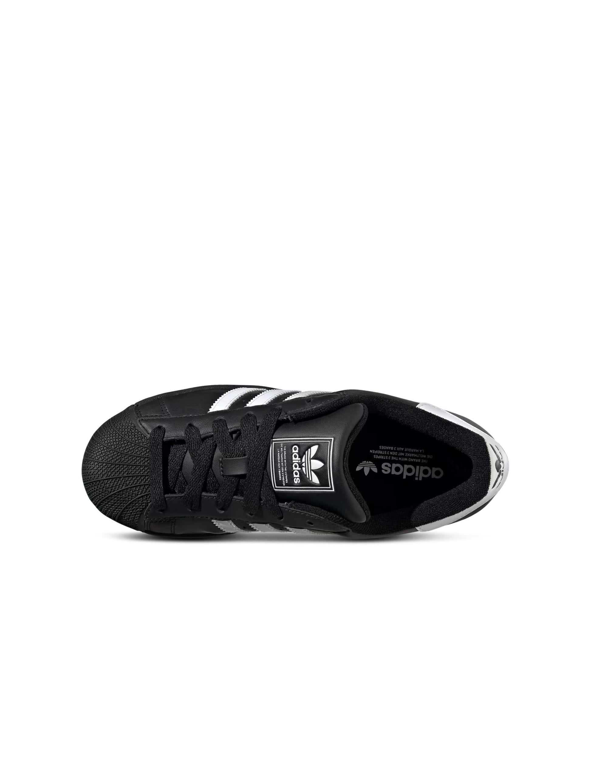 The adidas Superstar II shoes are back and ready to dominate the streets once more. With its iconic shell toe design and serrated 3-Stripes, these shoes have spent over 50 years fusing sport and street style. Revamped in clean, versatile black and white, these juniors' sneakers provide all-day comfort with a molded sockliner and structured leather upper. The stable rubber cupsole with classic herringbone traction pattern keeps you grounded and going in class and style. Wear them with practically anything, from glossy basketball shorts to baggy jeans or cargo pants.