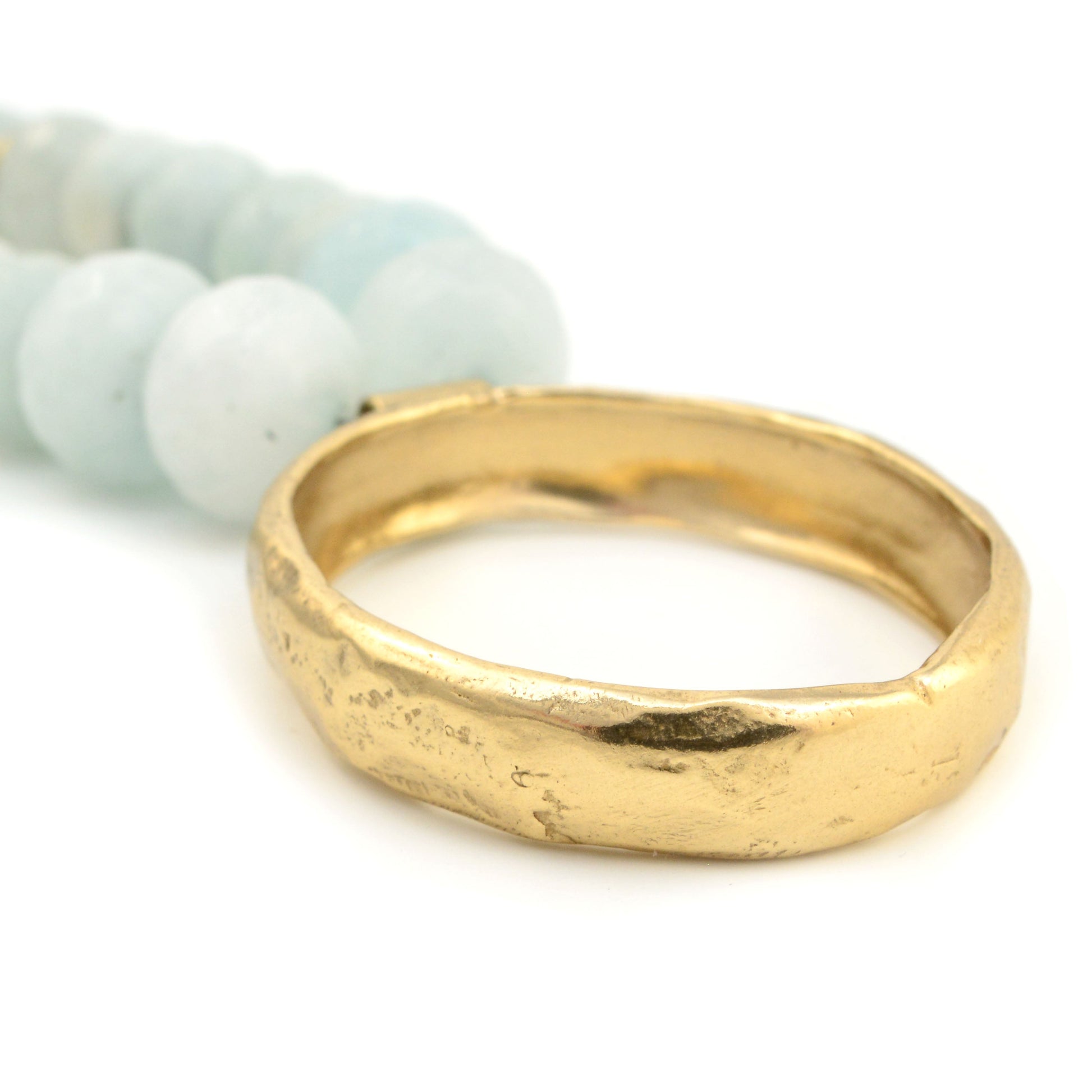 The Aquamarine Sun Necklace by Collection 1304 radiates serene beauty and timeless elegance. Featuring graduated aquamarine beads in soft, seafoam hues, this necklace captures the soothing essence of tranquil waters. At its center is a bold, handcrafted golden bronze oval pendant, with a gently hammered texture that adds depth and artisanal charm. The harmonious balance of delicate gemstones and the substantial pendant makes this piece a versatile statement for both casual and formal occasions. Proudly made in the USA, the Aquamarine Sun Necklace reflects the artistry and refined craftsmanship of Collection 1304.