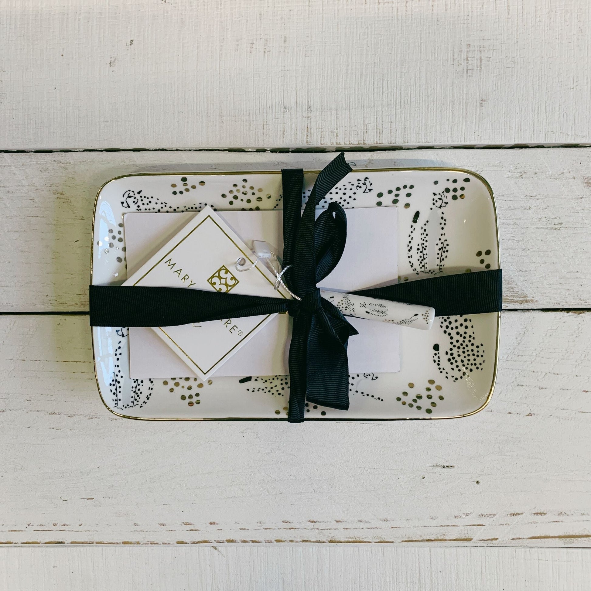 Cheetah Platter With Spreader | Ceramic Serving Dish Plate Tray with Butter Cheese Knife
