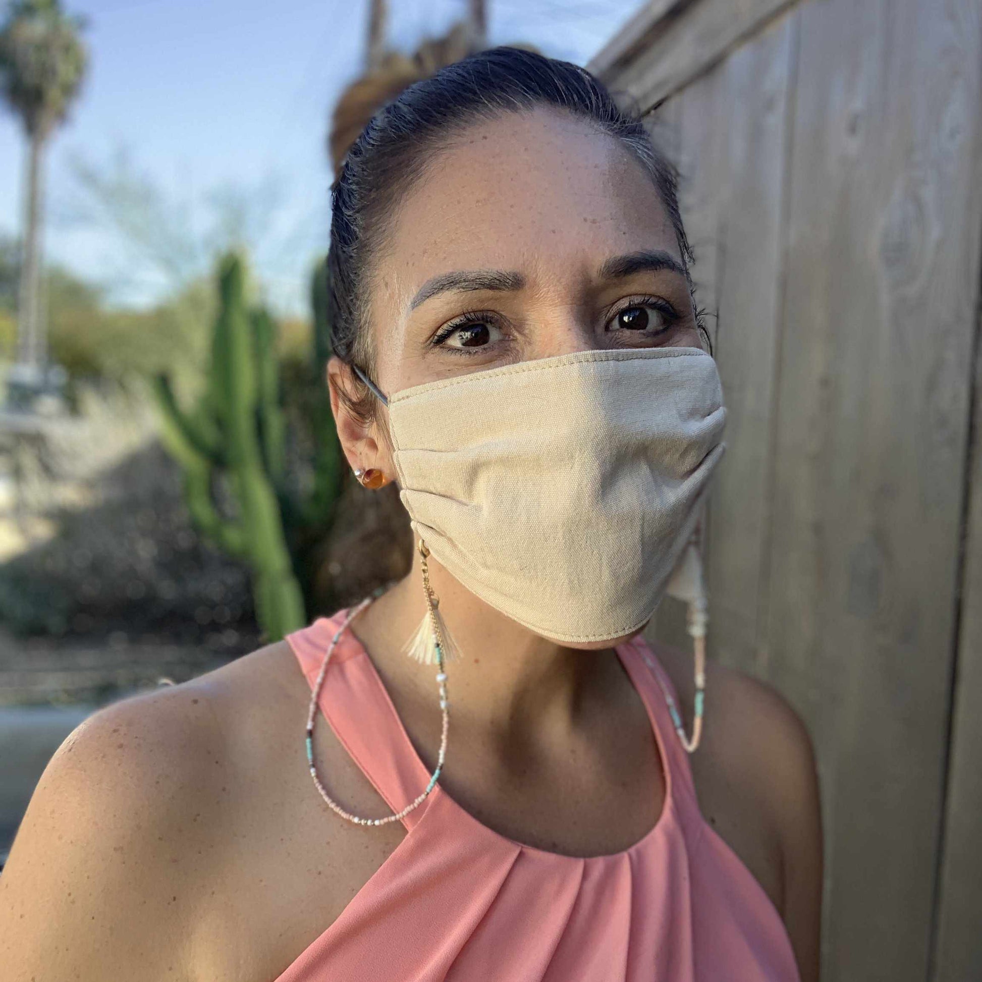 Our mask chain collection is here! Handcrafted with tiny seed beads, freshwater pearls and brass beads this mask chain doubles up as a sunglass chain! We will include a sunglass chain link with every mask that can be switched out. Finished with silk tassels and a delicate and fun chain.