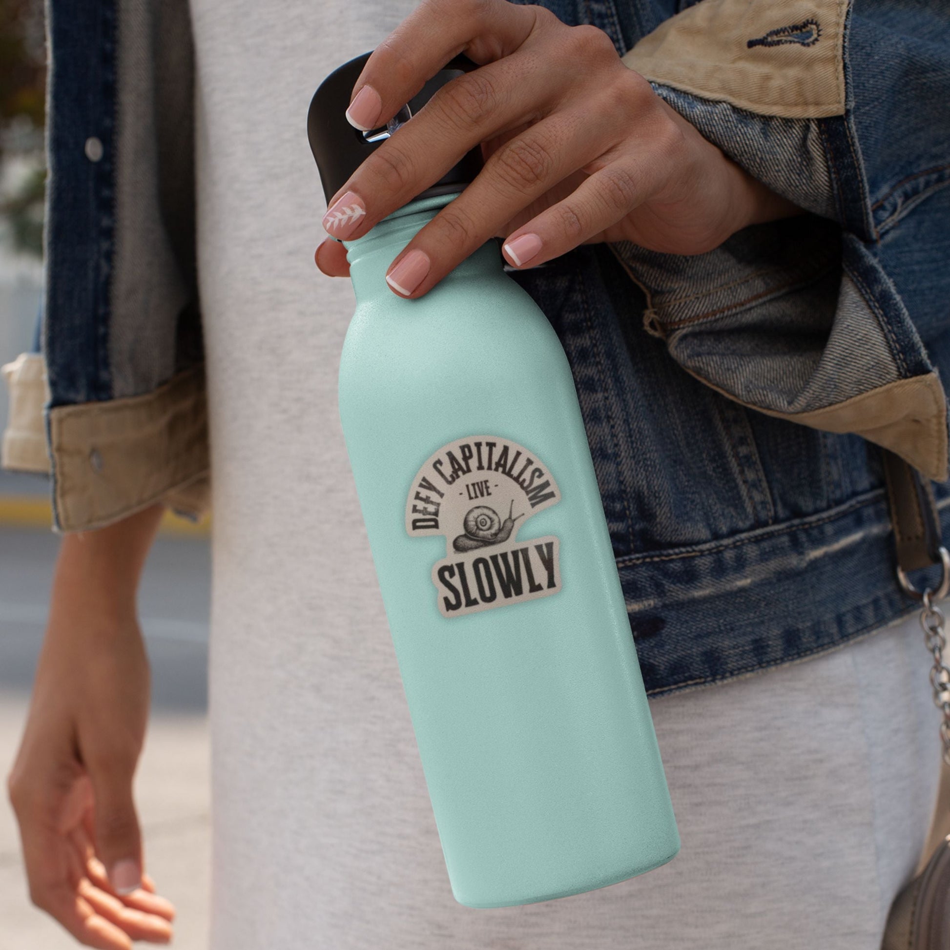 Defy Capitalism Live Slowly Snail Sticker | Vinyl Die Cut Decal
