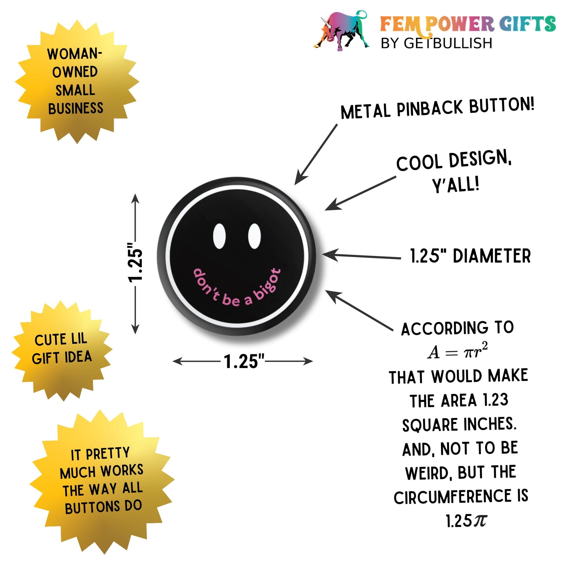 Don't Be a Bigot 1.25" Button Pin in Black | Pride Feminist Pinback Button Badge