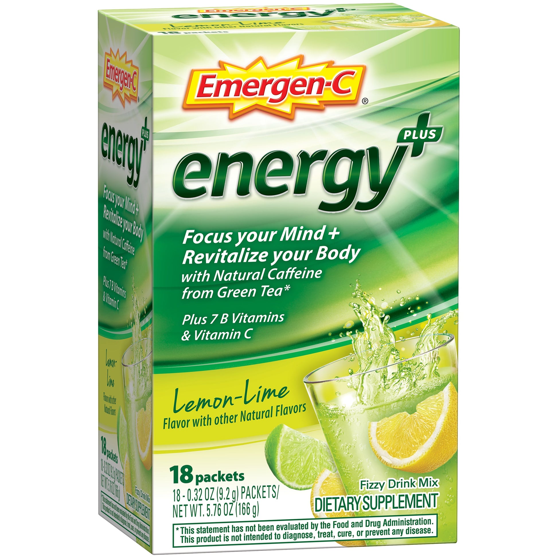 Emergen-C Energy+ (18 Count, Lemon-Lime Flavor) Dietary Supplement Drink Mix With Caffeine, 0.32 Ounce Packets