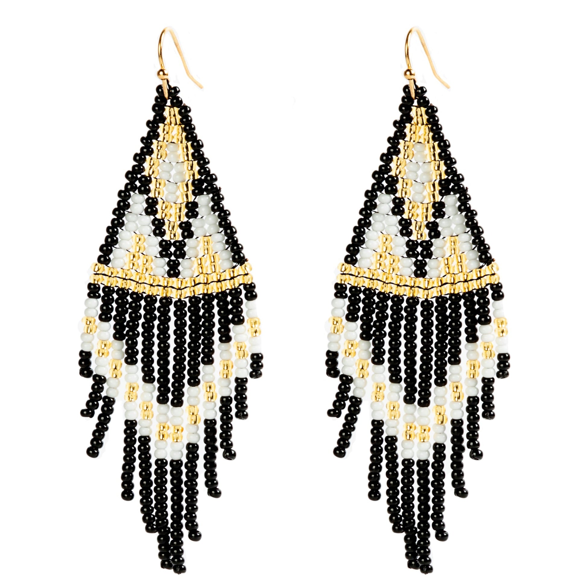 Hand woven by indigenous Embera Chami artisans, these seed bead earrings represent a piece of Colombian culture, fusing modern designs with ancient tribal craftsmanship.