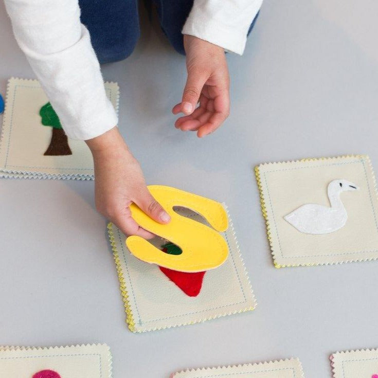 The English Sounds Bag was created to establish phonetic skills and alphabet recognition. These building blocks are essential to understand reading, writing, and verbal communication. The tactile nature of the toy also aids in memory retention. The Sounds Bag develops reading, writing, reasoning, phonetic skills, and cognitive development.