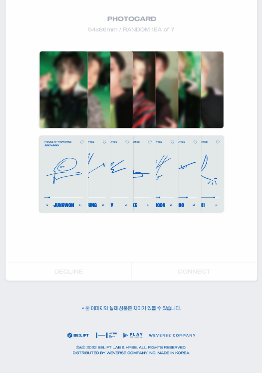7. PHOTOCARD: 54x86mm / RANDOM 1EA of 7