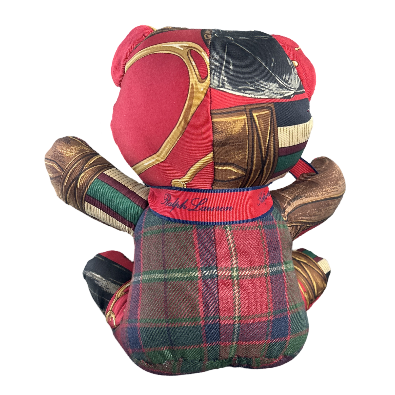 Vintage Ralph Lauren silk scarves and tartan plaid cloth handmade into a one of a kind animal. Non-Allergenic polyfill stuffing. For decorative use only.