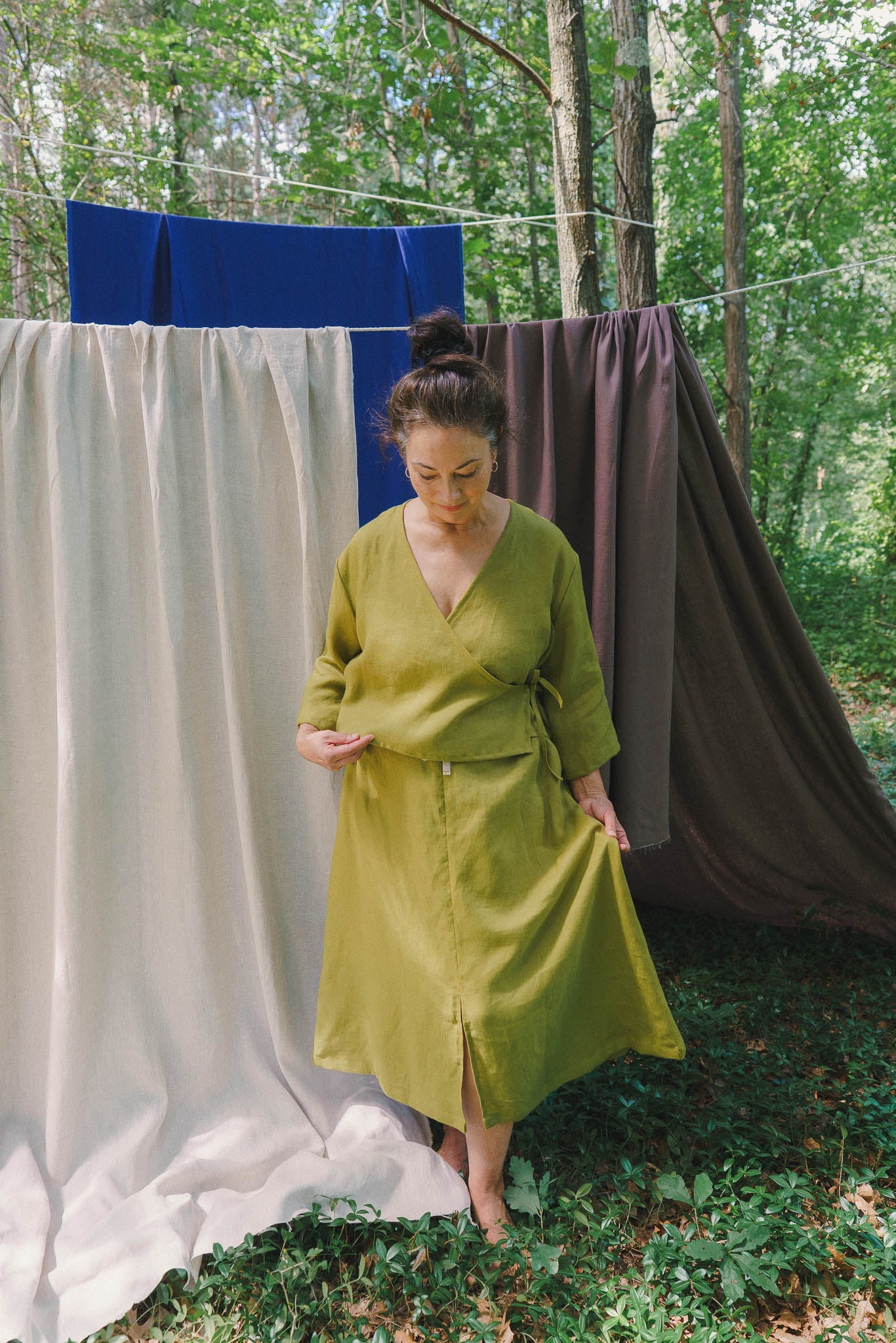 100% Linen Esme Skirt – Adjustable Midi Skirt with Customizable Slit