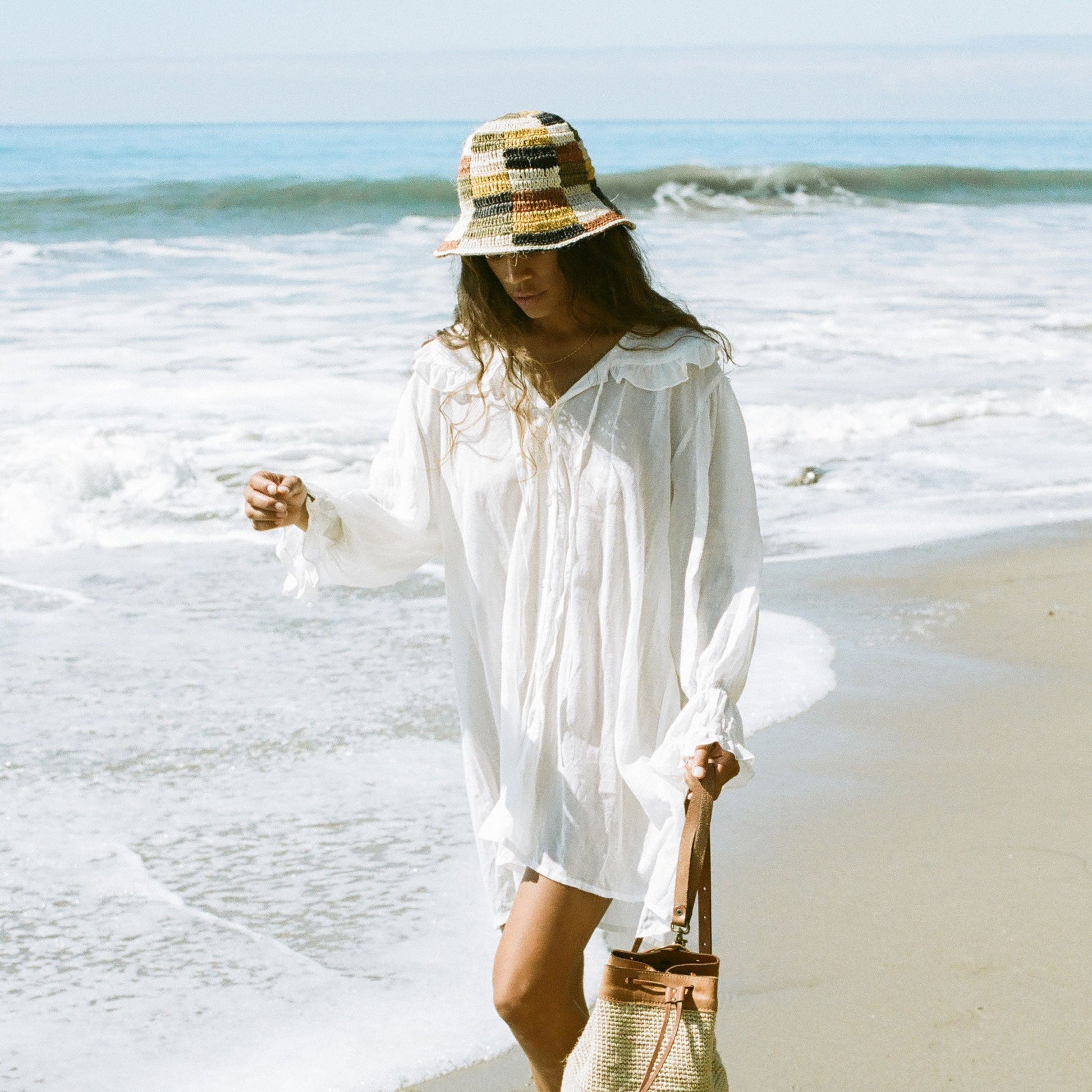 Fall Bucket Hat - Crocheted Multicolor Checkered