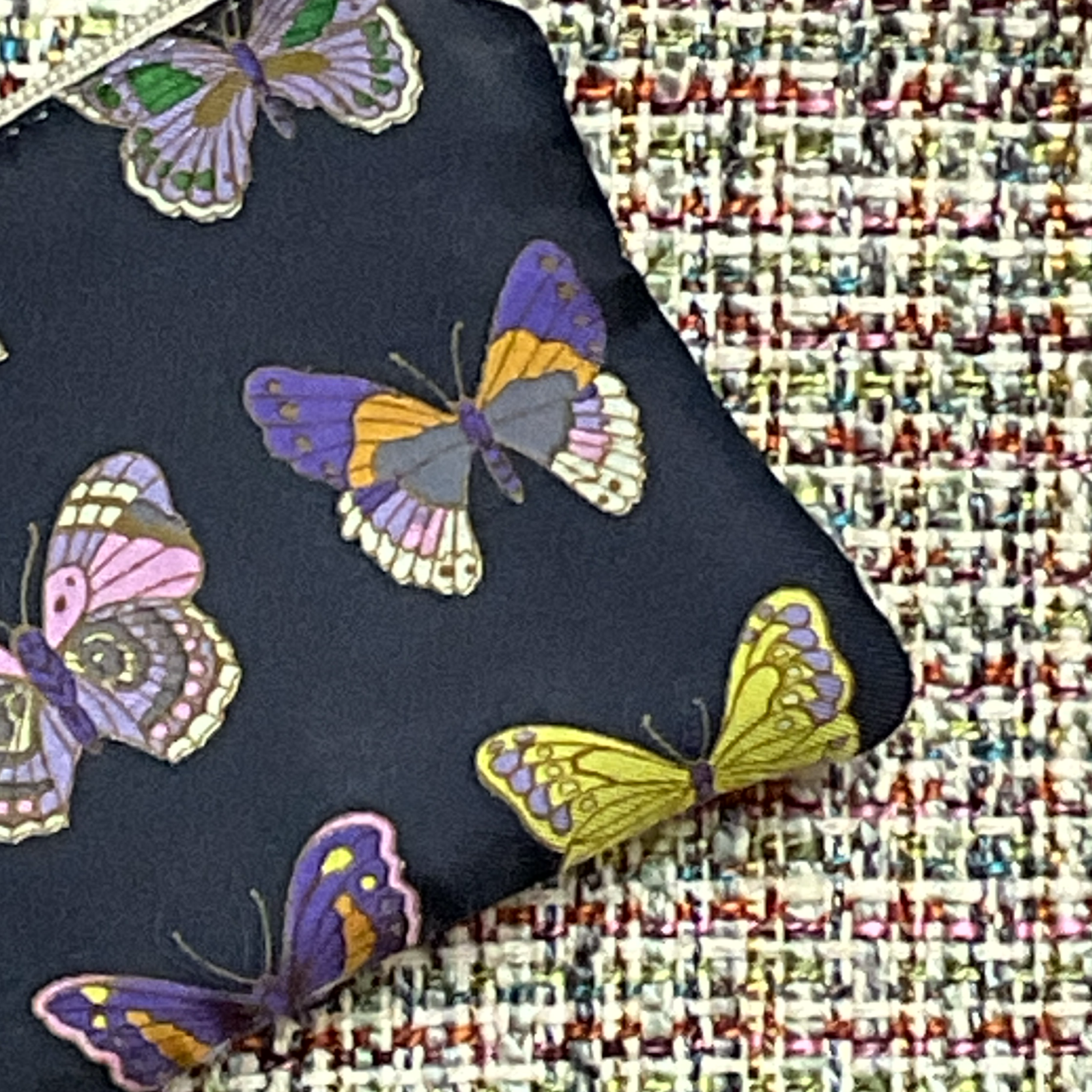 Multicolor butterflies on navy blue background