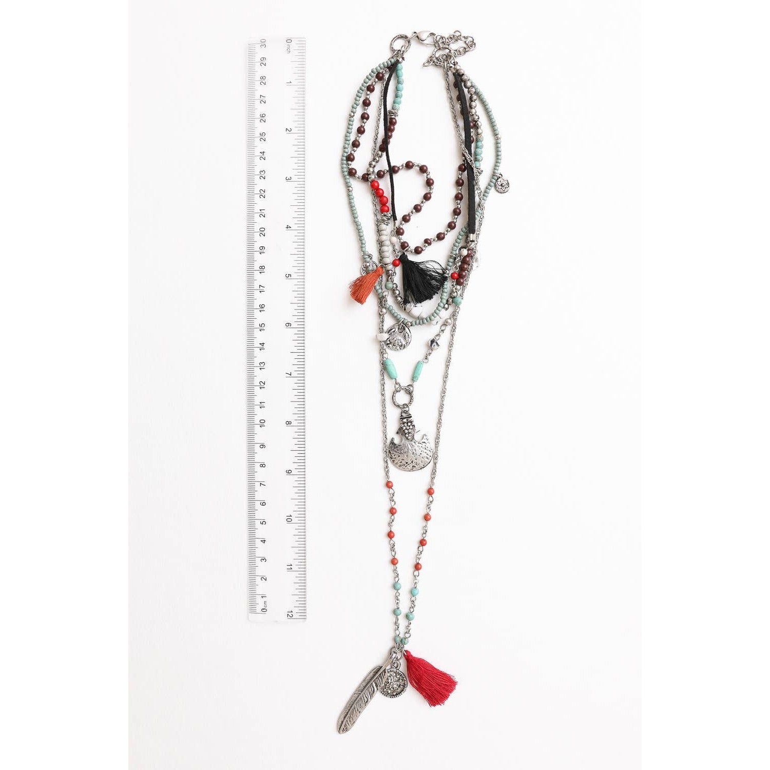 Go ahead, express your individuality with the Feather Fringe Multi-Layered Necklace!