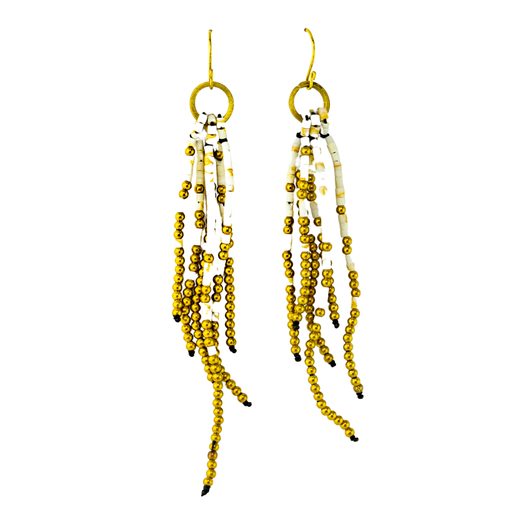 Elevate your style with these unique earrings handcrafted by artisan Kannika in the highlands of Thailand. Each pair is made with care and following fair trade guidelines. The combination of brass hooks and beads creates a distinctive look that is sure to turn heads.