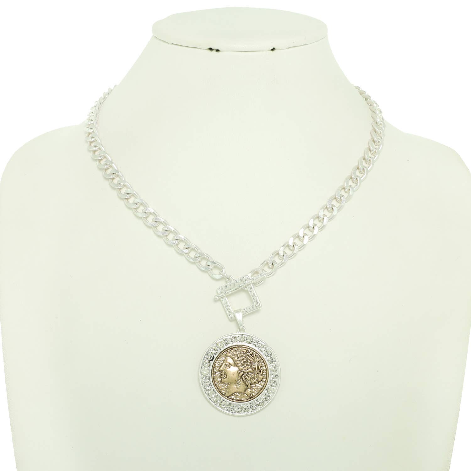 This Greek Roman Goddess Coin Pendant Necklace is a nod to ancient mythology and adds a touch of history to any outfit.