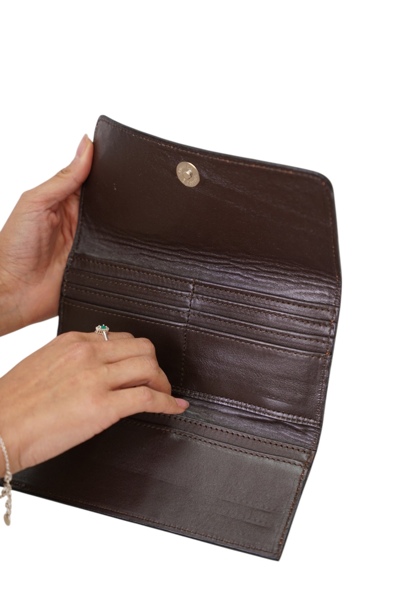 With 6 credit card slots, a bill holder, and 2 full-length storage panels, this wallet offers ample space to keep your cards, cash, and receipts organized. The magnetic snap closure ensures security while maintaining a clean, polished look.