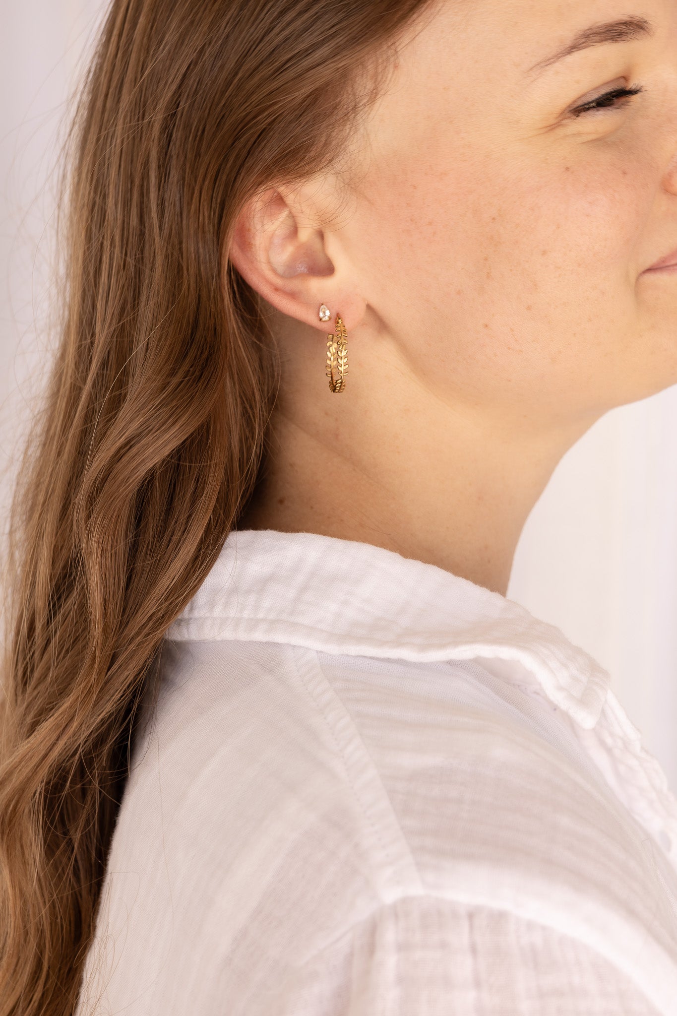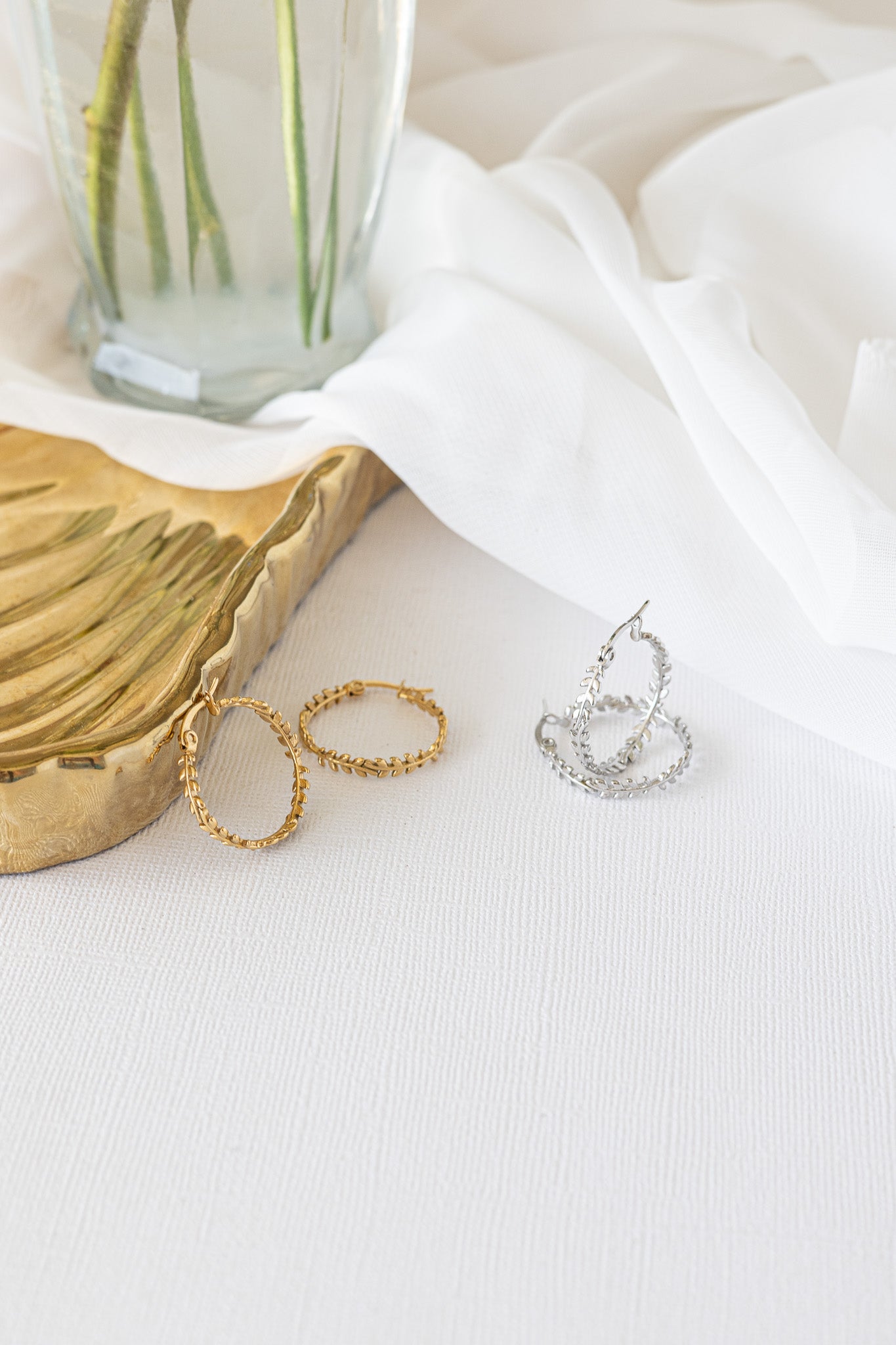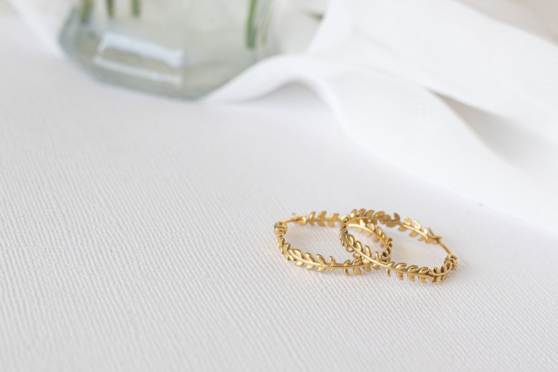 She is so dainty, the perfect size, and perfect for formal and casual outfits alike! She is a basic that is not at all basic. The laurel wreath branches give it more of an elevated and unique look than a traditional hoop, and it definitely makes the whole earring feel more feminine and ethereal too.