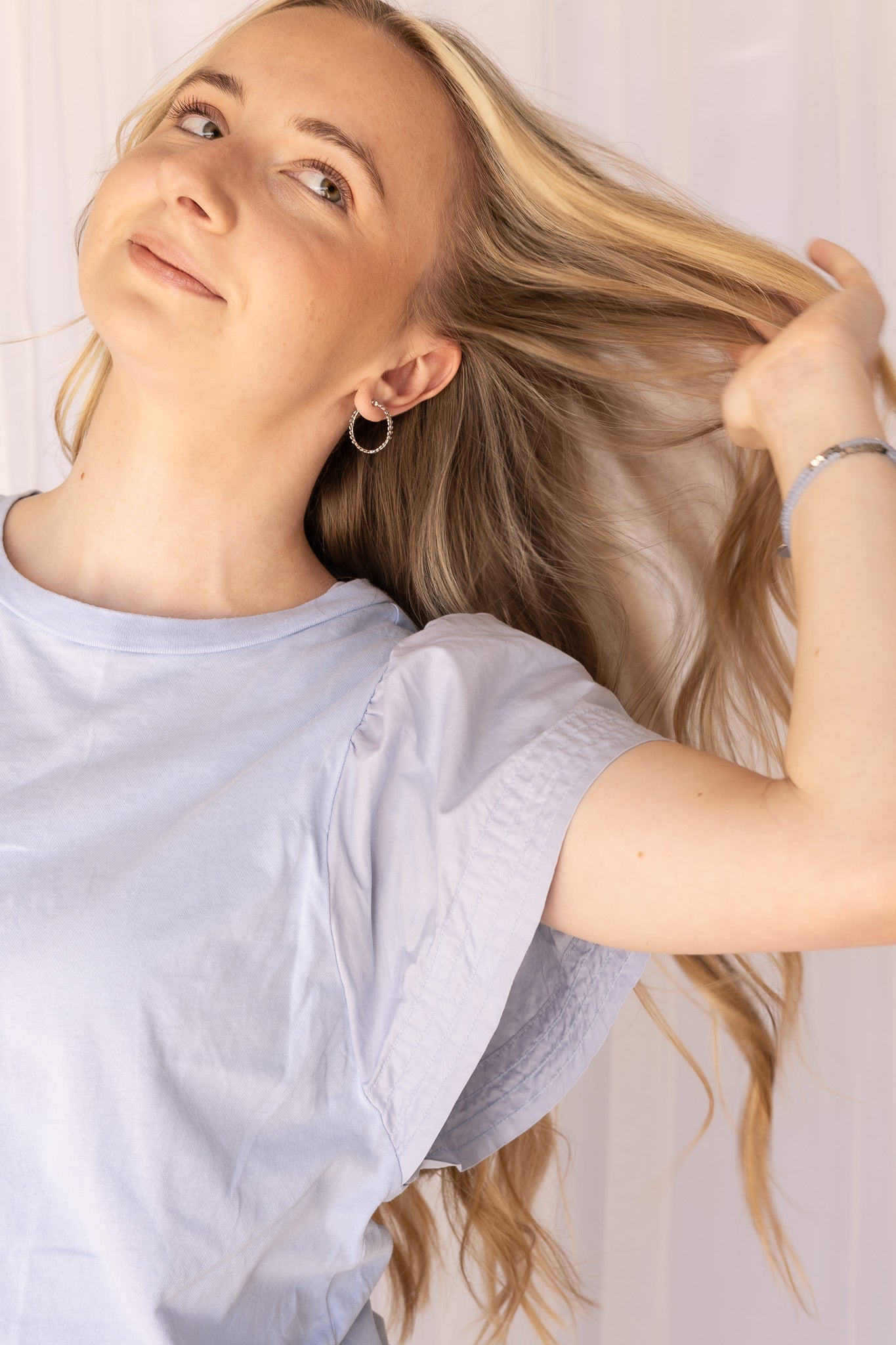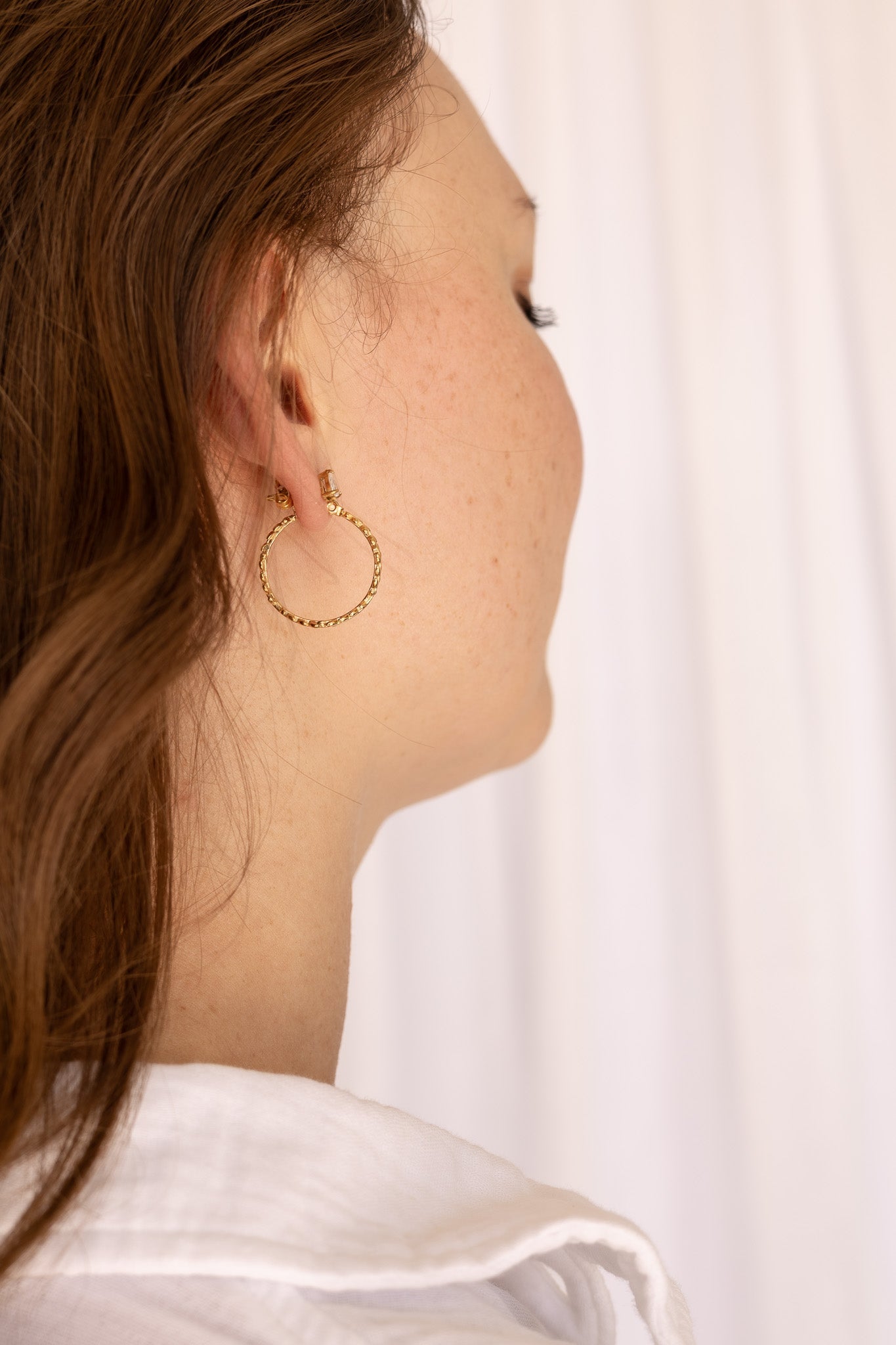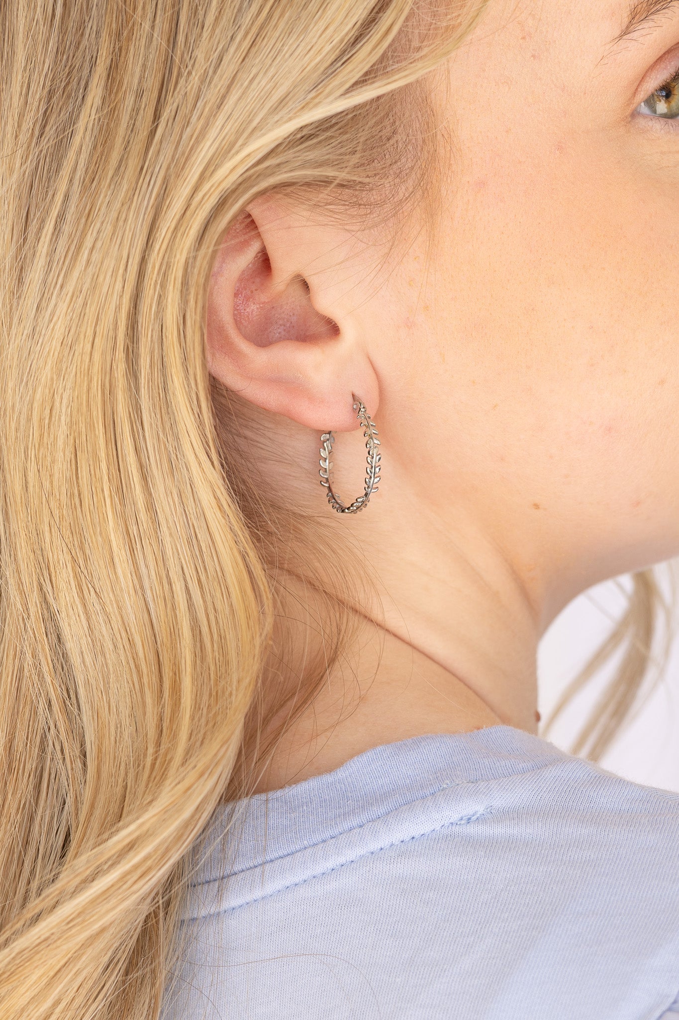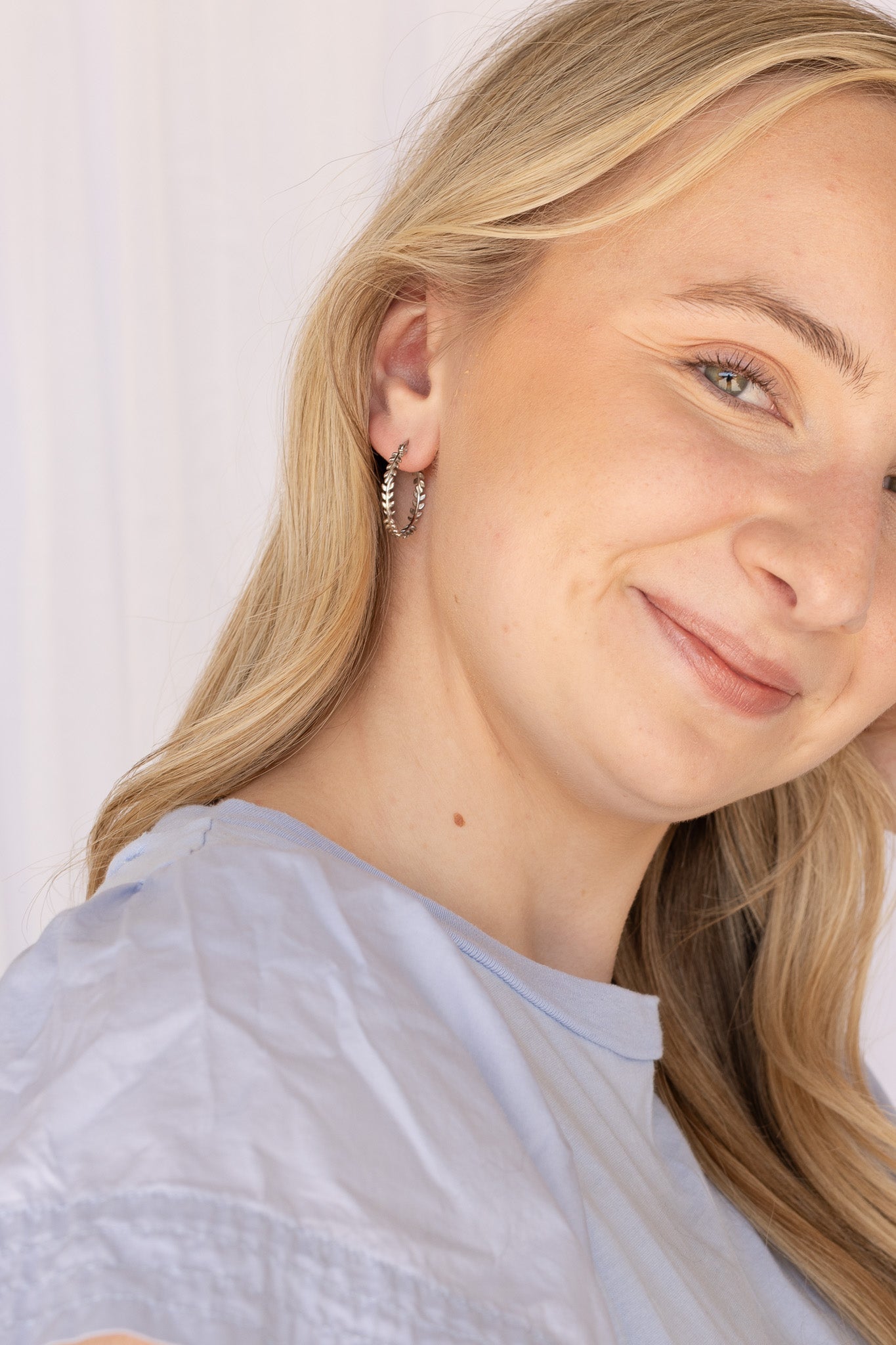 She is so dainty, the perfect size, and perfect for formal and casual outfits alike! She is a basic that is not at all basic. The laurel wreath branches give it more of an elevated and unique look than a traditional hoop, and it definitely makes the whole earring feel more feminine and ethereal too.