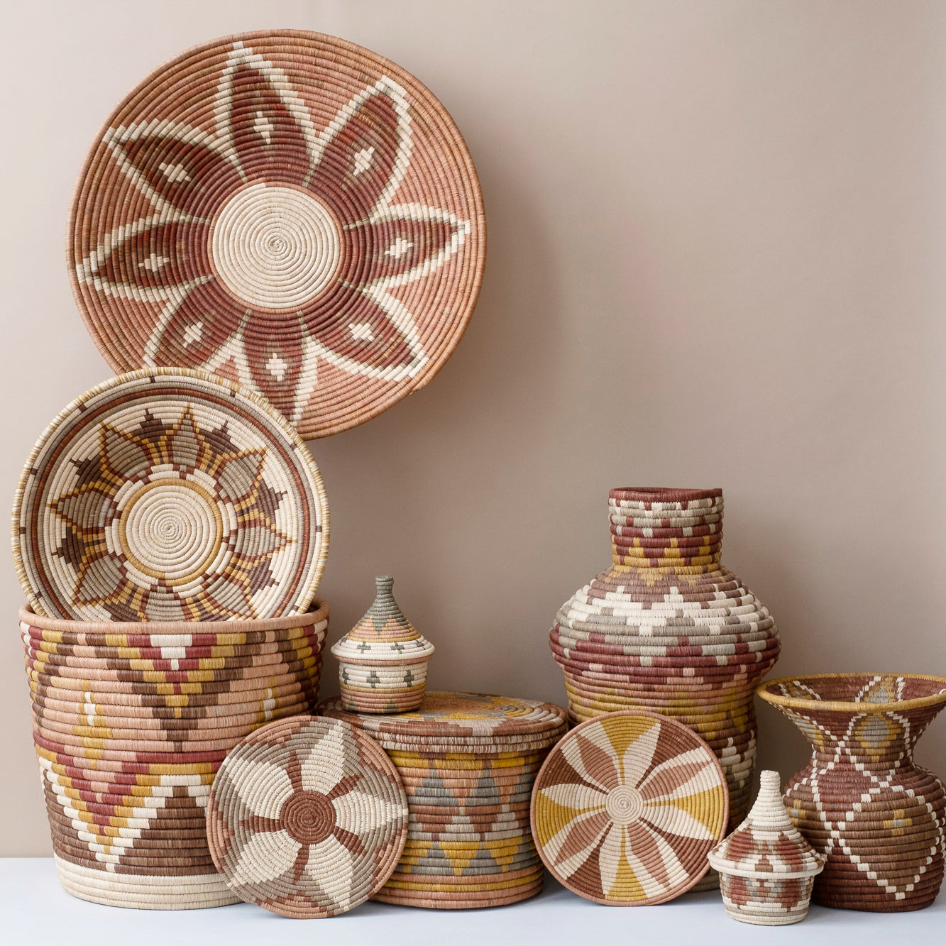 Handcrafted by women artisans from the Batoro tribe living in the very rural mountains of Western Uganda. These weavers are a part of a cooperative that provides training to single mothers, widows and other marginalized women who are subsistence farmers and weave baskets to provide additional income.