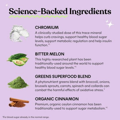 Lemme Curb Cravings & Glucose Support Capsules are expert formulated with clinically studied Chromax® Chromium Picolinate to reduce cravings, promote healthy blood sugar levels† and support carbohydrate metabolism.* Plus Organic Cinnamon, Wild Bitter Melon and a Greens Superfood blend traditionally used to support sugar metabolism and overall antioxidant support.* 100% Drug-Free formulation.
