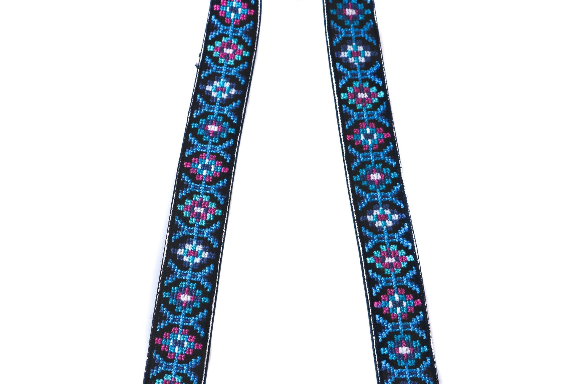 Mai Woven Bag Strap - Blue & Pink with Leather
