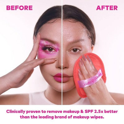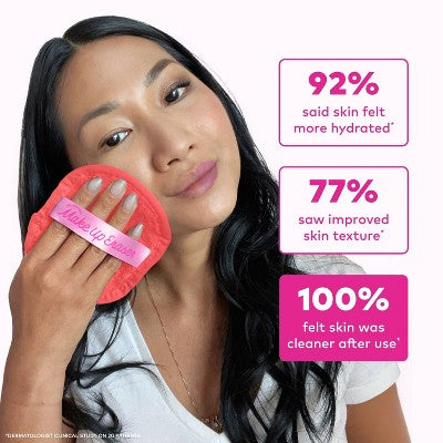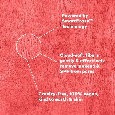 Erase all makeup with JUST WATER™ including waterproof + SPF. Our patented, water-activated, cloud-soft fibers gently & easily remove all makeup & sunscreen from pores. 2 in 1 benefit: one side erases makeup & one side exfoliates skin.