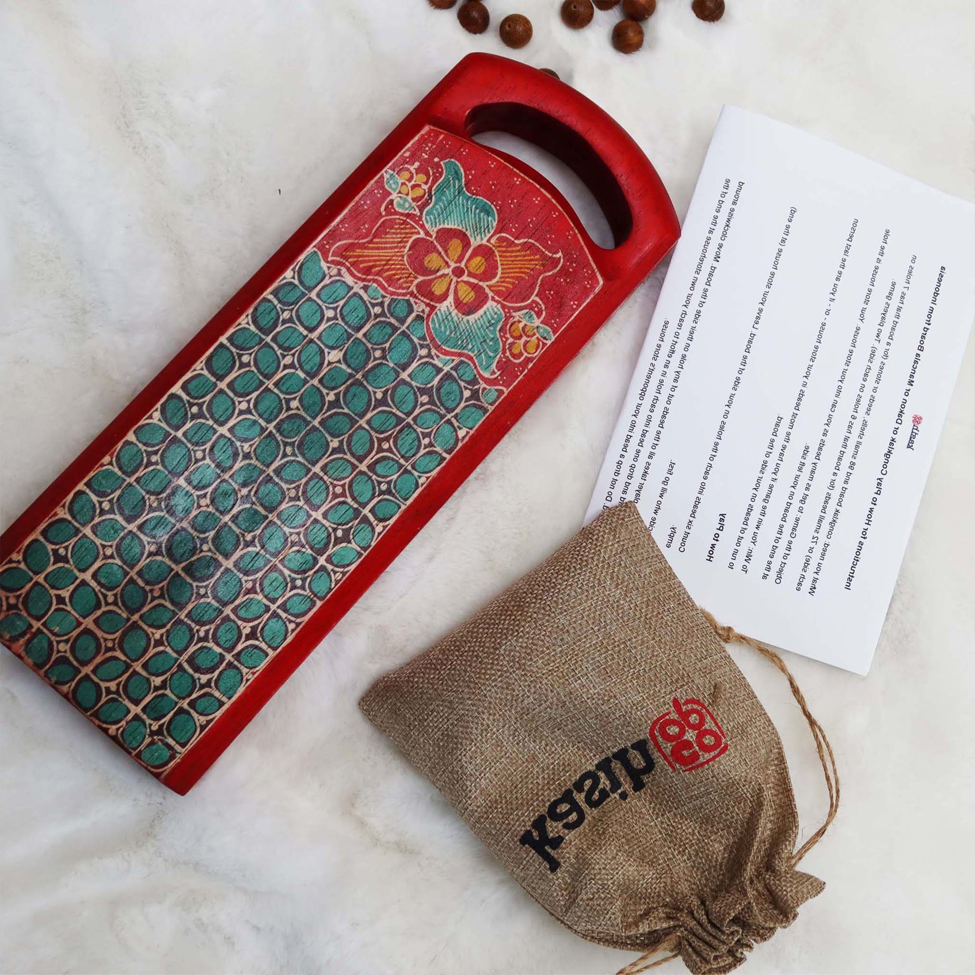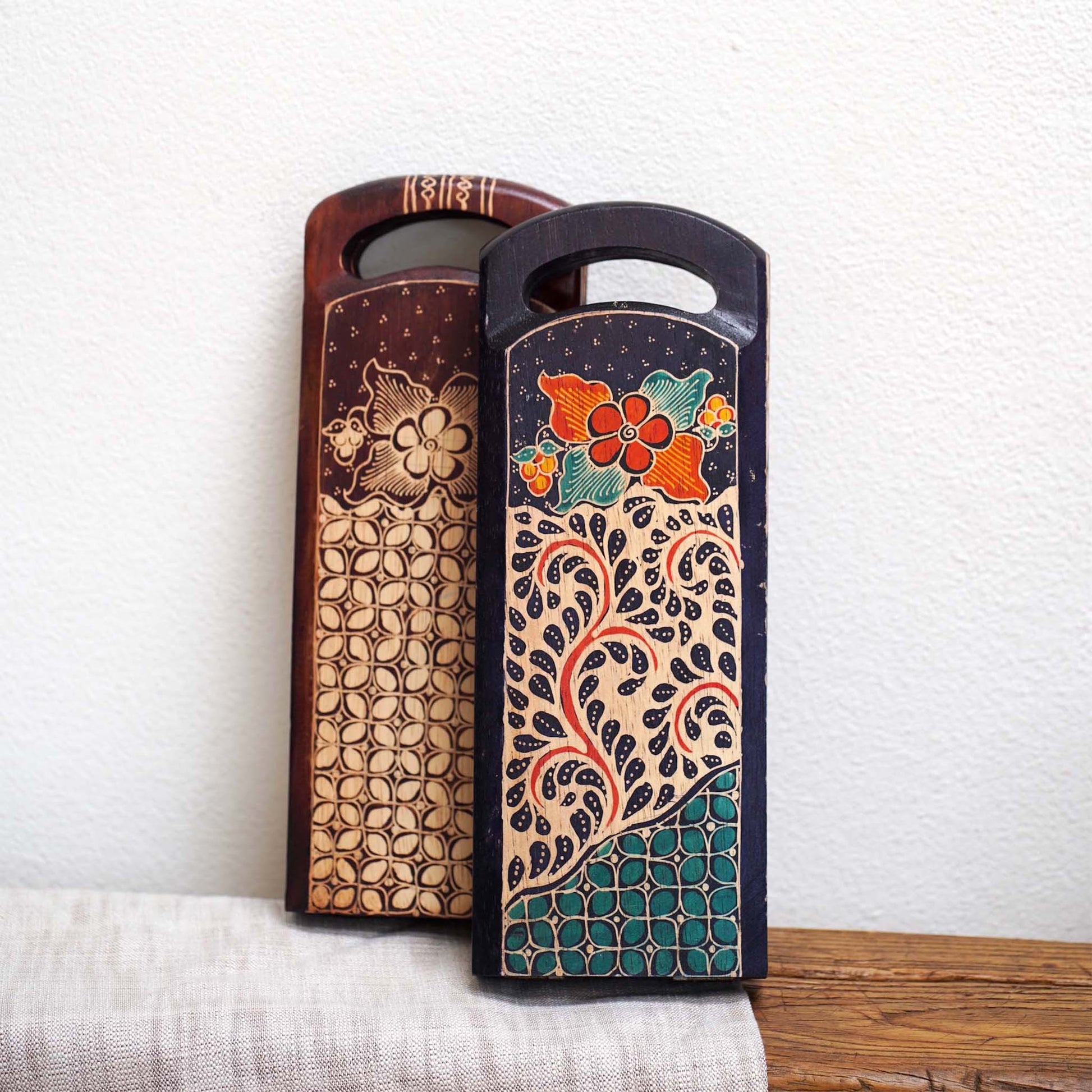 - Hand crafted from wood log, shaped into mancala board, then batik using centuries old wax and dye technique before being hand drawn by our Indonesian artisans.