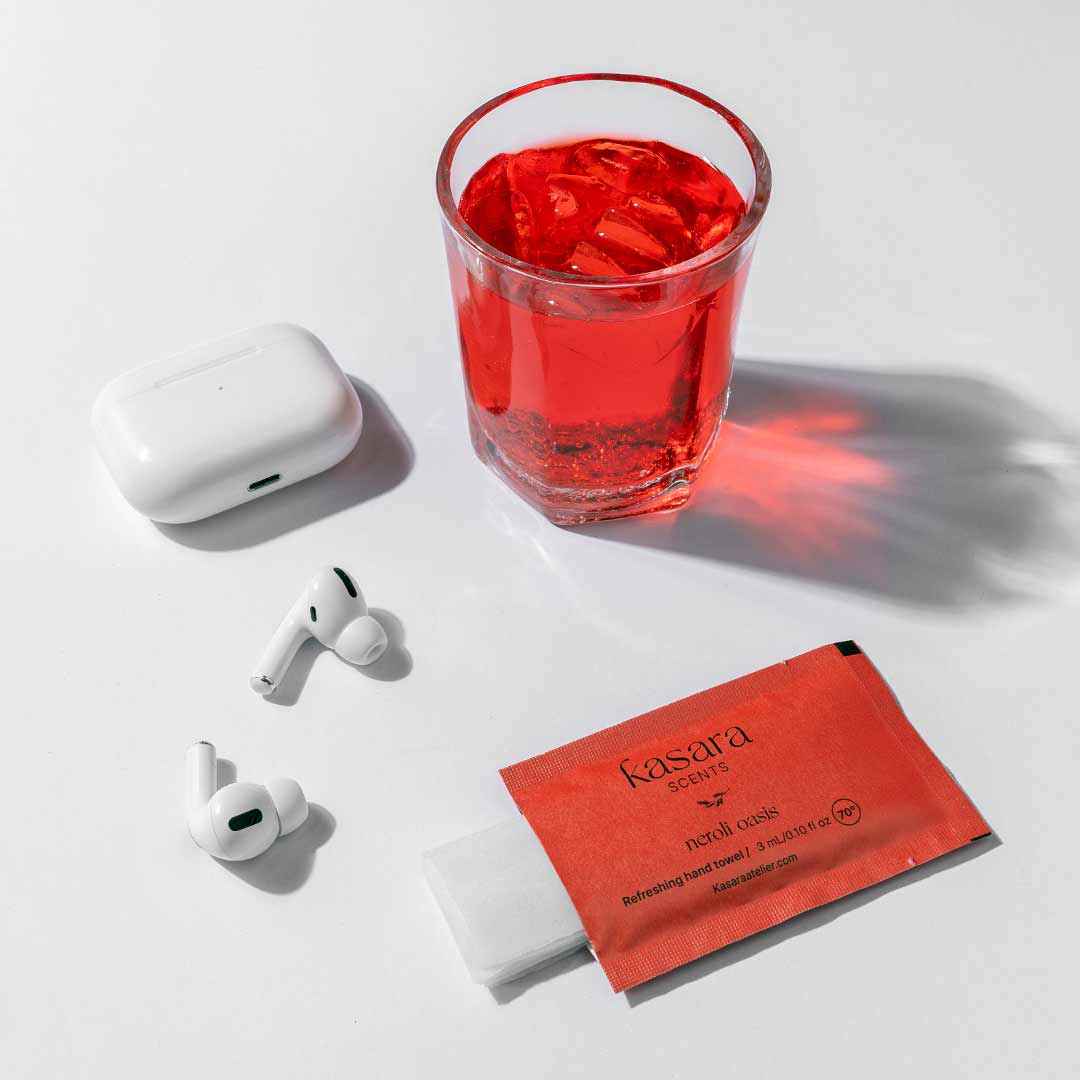 Whether you need to freshen up after a meal, while traveling, or anytime during the day, Kasara Neroli Oasis scented wipes are a convenient and effective way to keep your hands clean and fragrant with the light and floral scent of orange blossom.