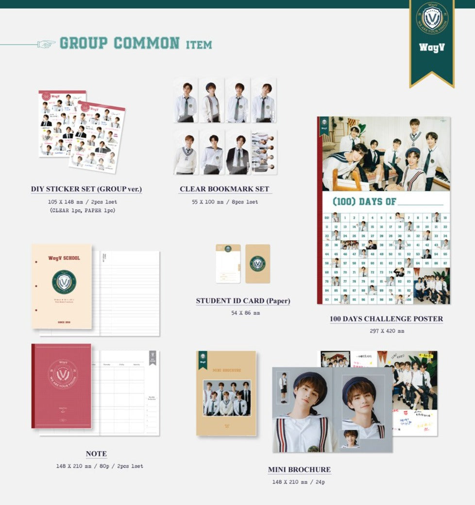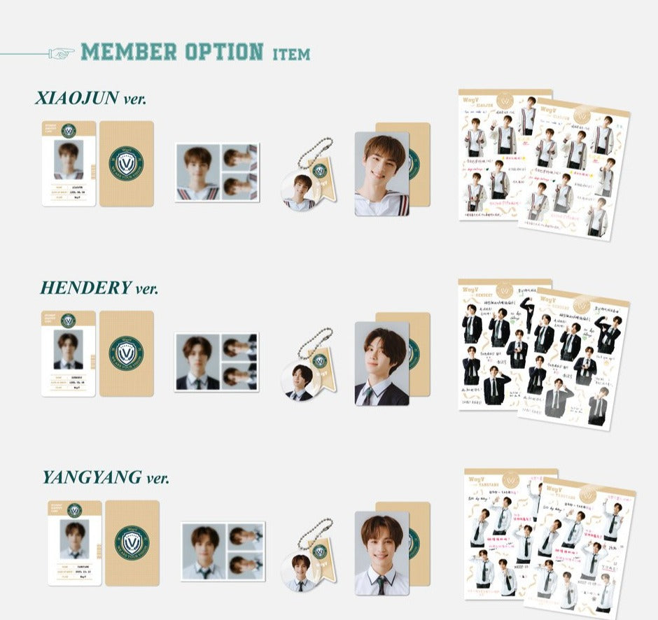 It's back to school with your bias from WayV! Each package comes with common group items and individual member items.