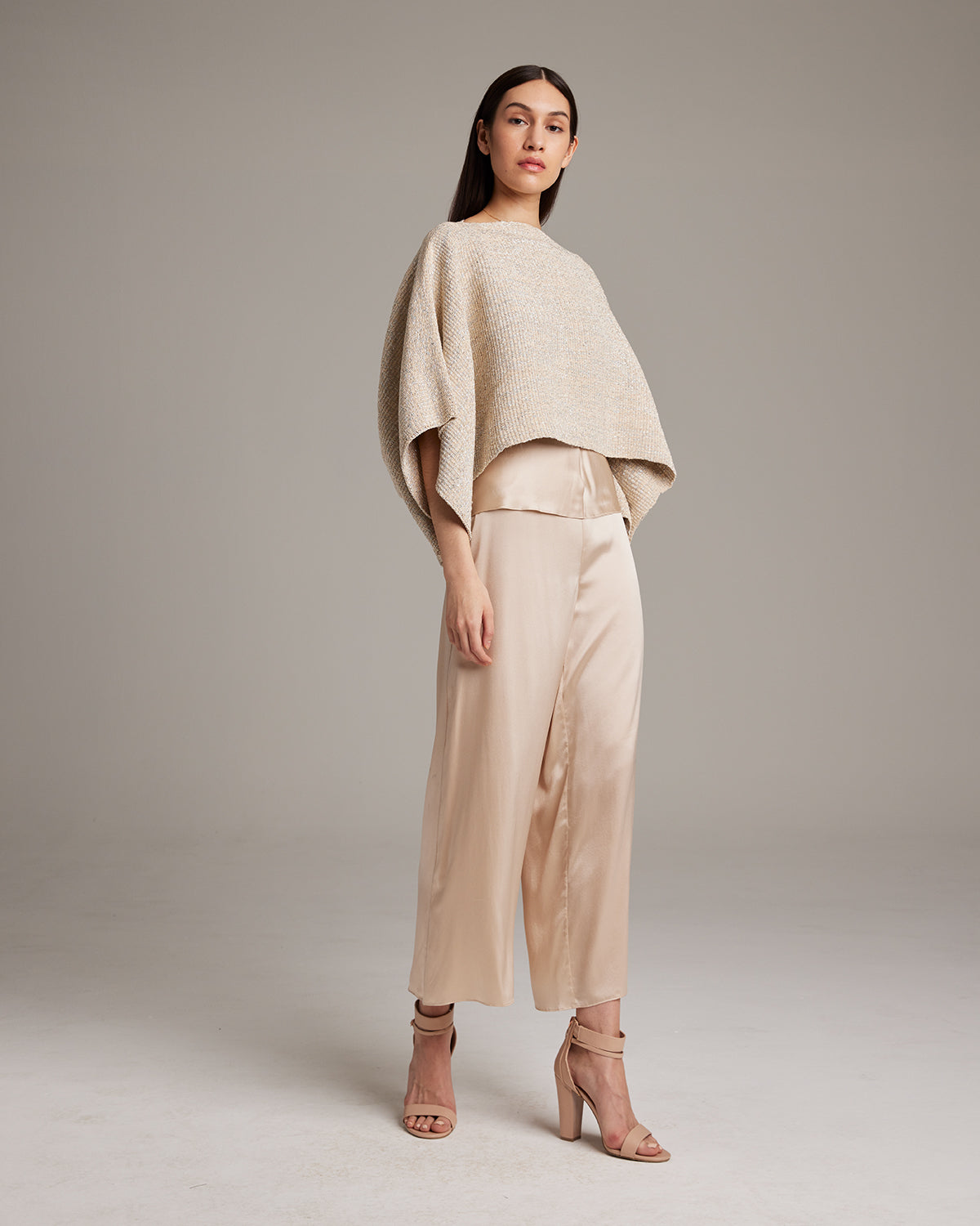 This Pearl Crop Top is handcrafted from mercerized cotton to create a textured and luminous surface. The cropped silhouette and expansive sleeves offer a versatile look, ideal for both casual and special events.