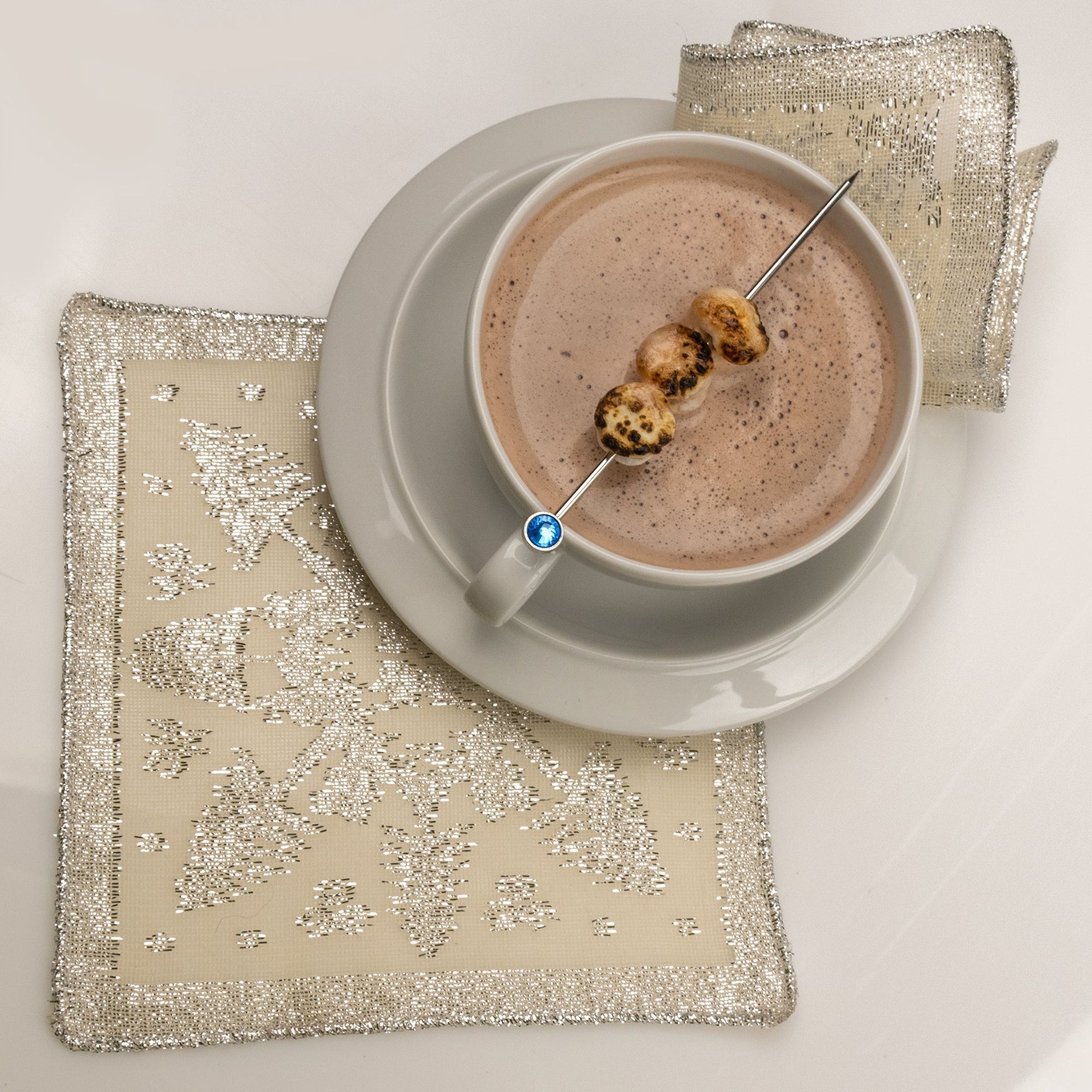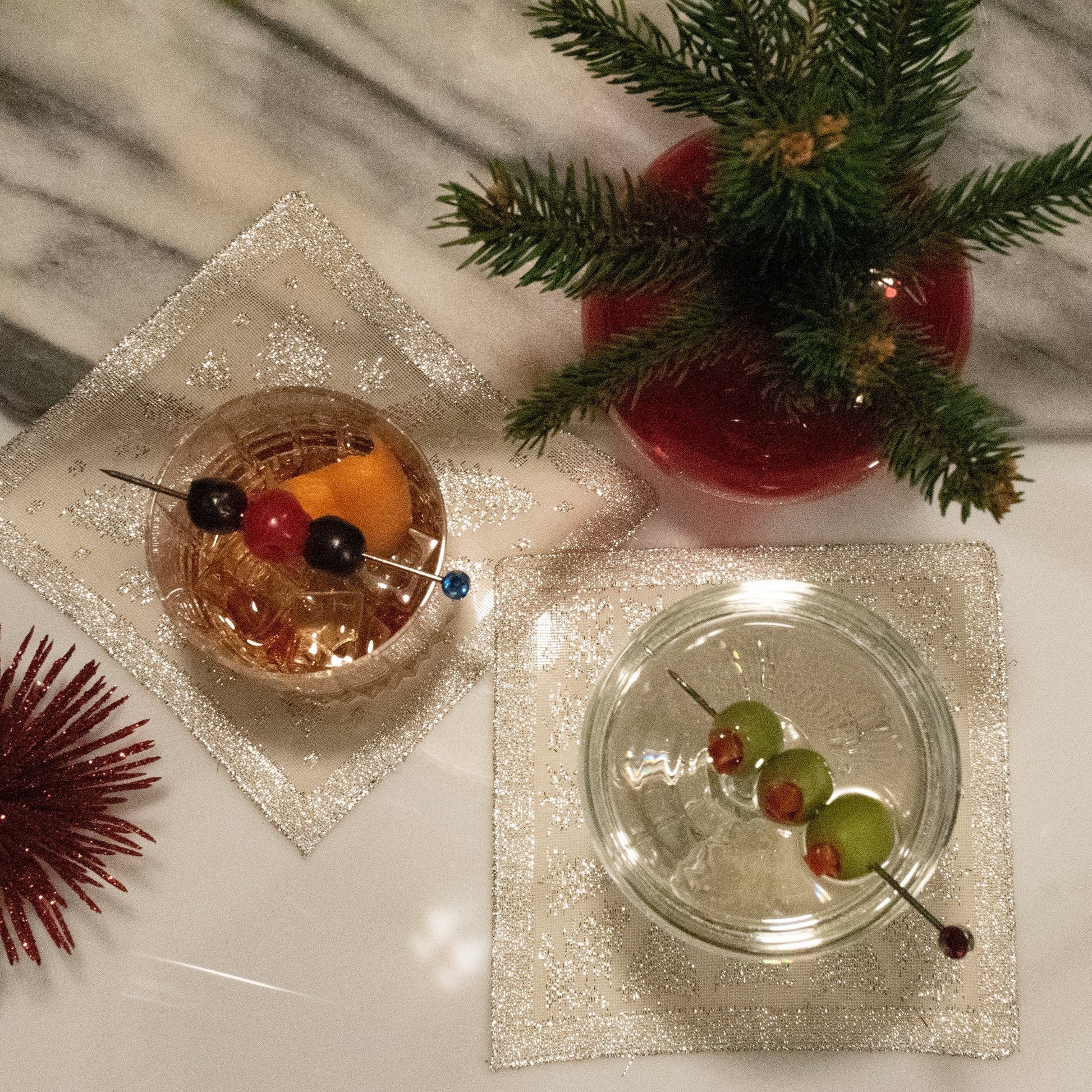 Prince of Scots Scottish Leno Gauze Cocktail Napkins ~ Silver Lurex ~