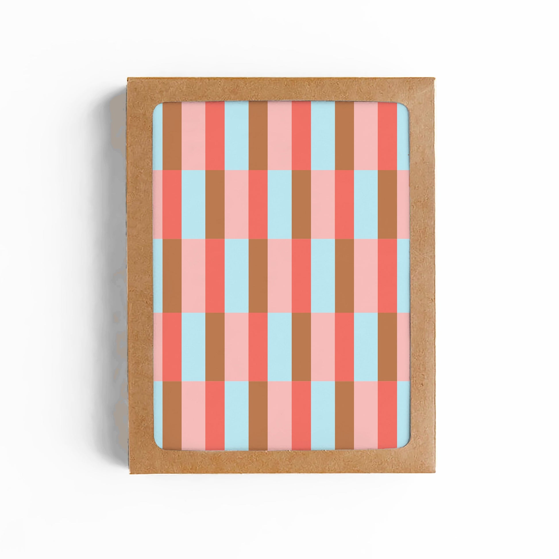 Retro Striped Checkerboard Blank Card-Boxed Set of 8