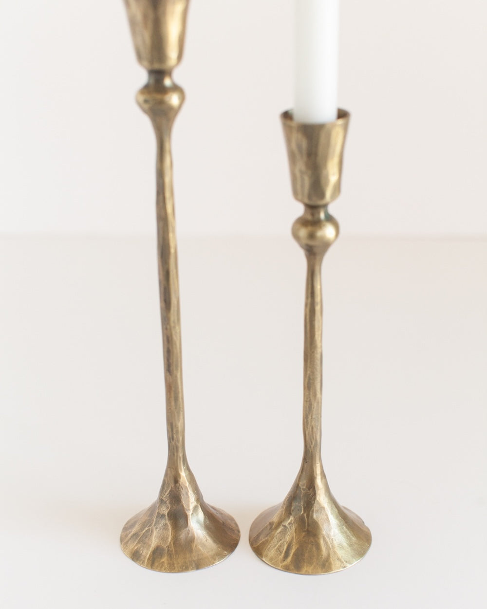 Hand-forged by master blacksmiths in India, our iron candle holders represent generations of skill united with timeless modern style. Each piece requires hours of skilled craftsmanship that creates a texture unique to true hand-forged ironwork. Unlike mass-produced alternatives that are cast, these taper candle holders have a weight and finish that is distinctly premium. With a sturdy weighted base, each is topple tested to ensure safety in addition to elegance.