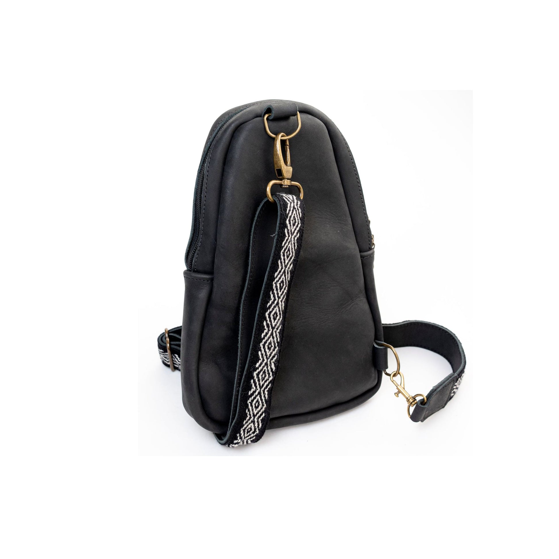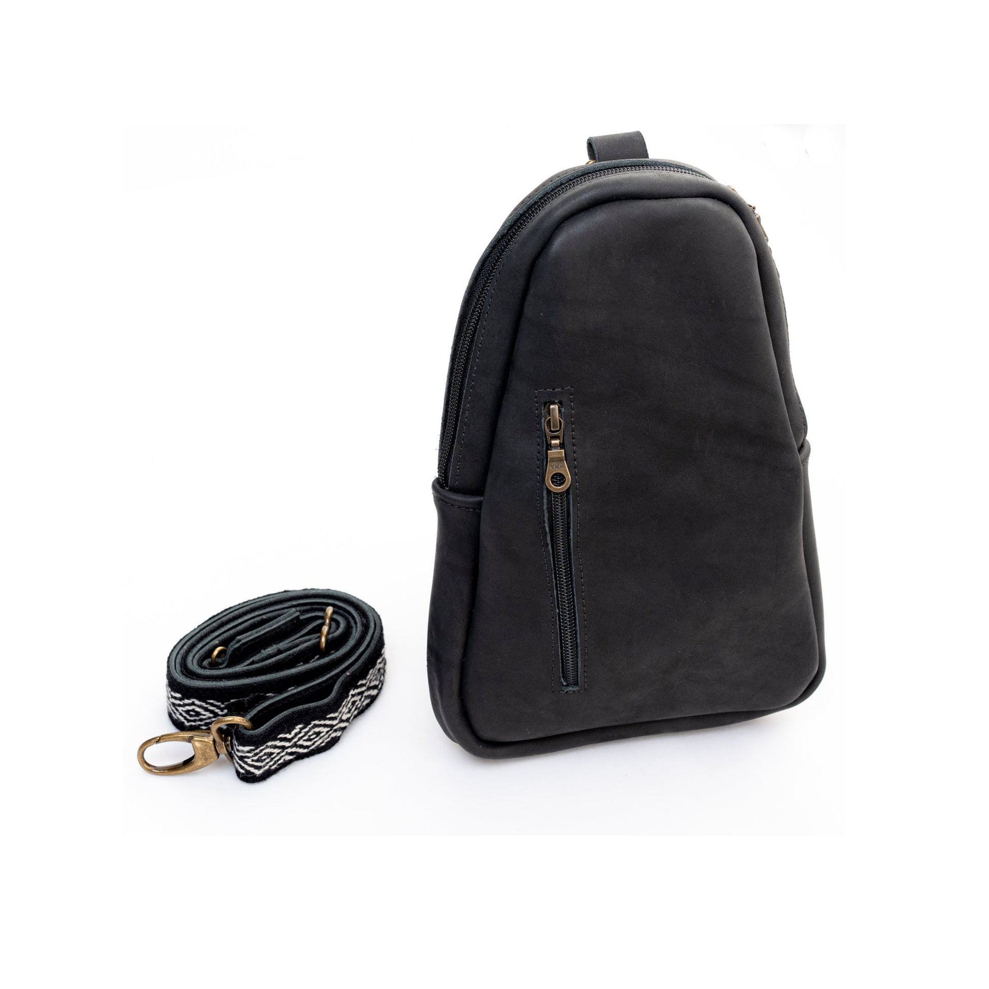 Features: Crossbody backpack, wool strap, zippered exterior pocket, interior open pocket