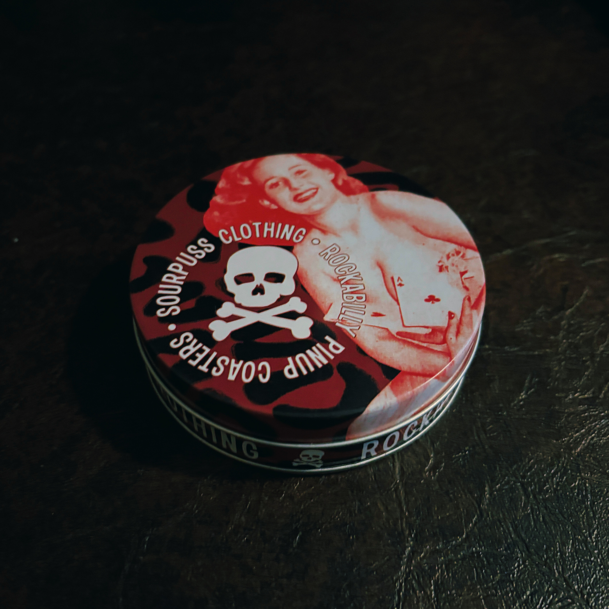 Perfect for coffee tables, home bars, or as a retro-inspired gift, these Sourpuss coasters are a stylish way to keep your surfaces safe while celebrating rockabilly pin-up culture.