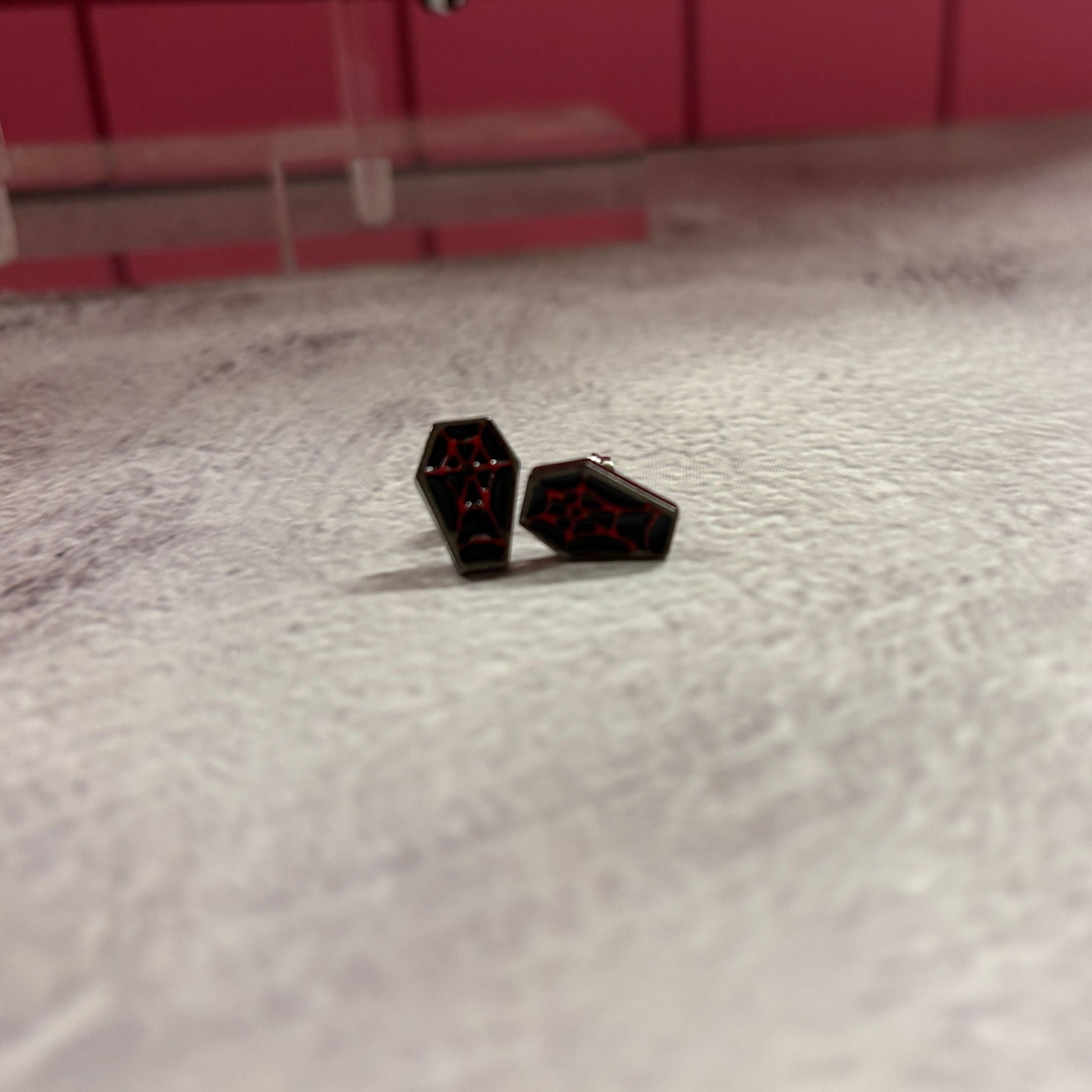 Designed with a red-and-black coffin motif, these earrings capture the perfect balance of creepy and cute. Crafted with nickel- and lead-free posts, they’re safe for sensitive ears while offering edgy flair.