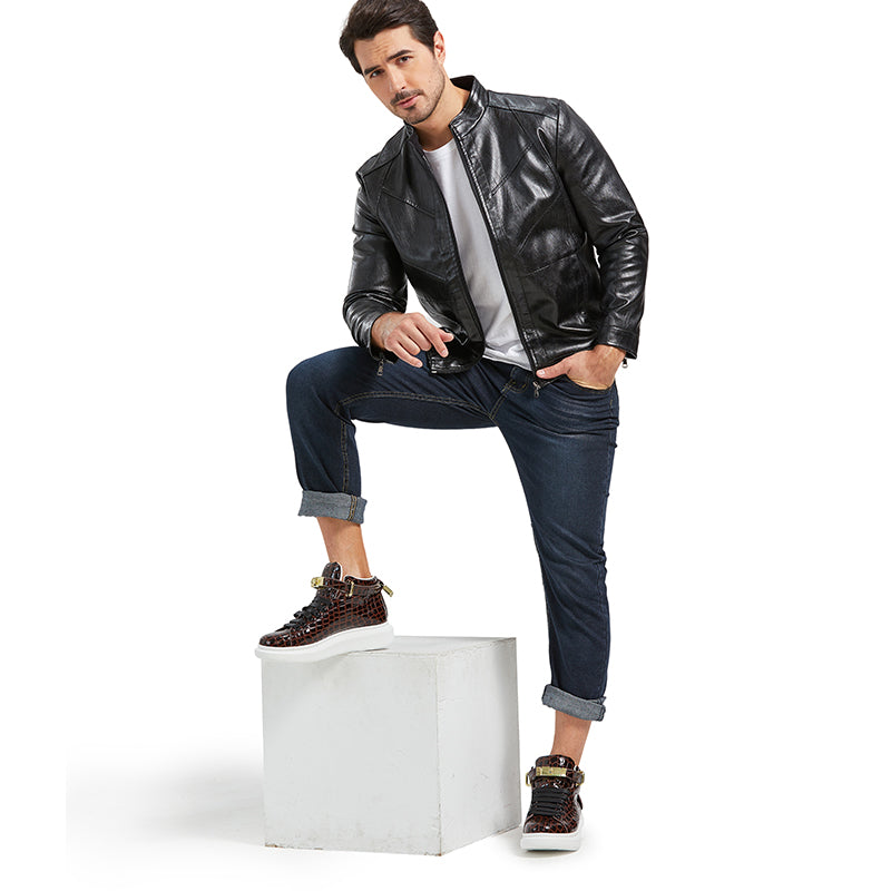 The Ostranuxe Business Croc-Sneakers feature a genuine cow leather upper and a durable rubber outsole, with a lace-up closure for a secure fit. The insole and lining are crafted from genuine pigskin leather, providing comfort and breathability, while the round toe design and metal decoration add a touch of sophistication.