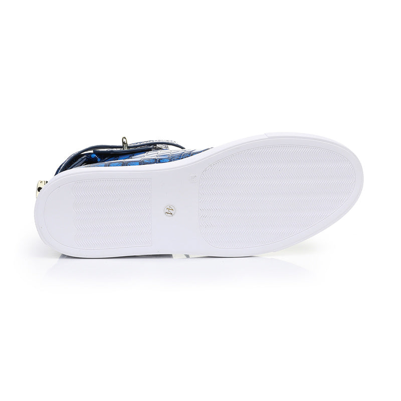 The Sovereign High-Top Luxe Sneakers feature a high-top design crafted from genuine cow leather with a crocodile texture, complemented by a durable rubber outsole and a comfortable pigskin leather insole. These fashionable sneakers have a solid pattern, a round toe shape, and are secured with a unique metal decoration closure.