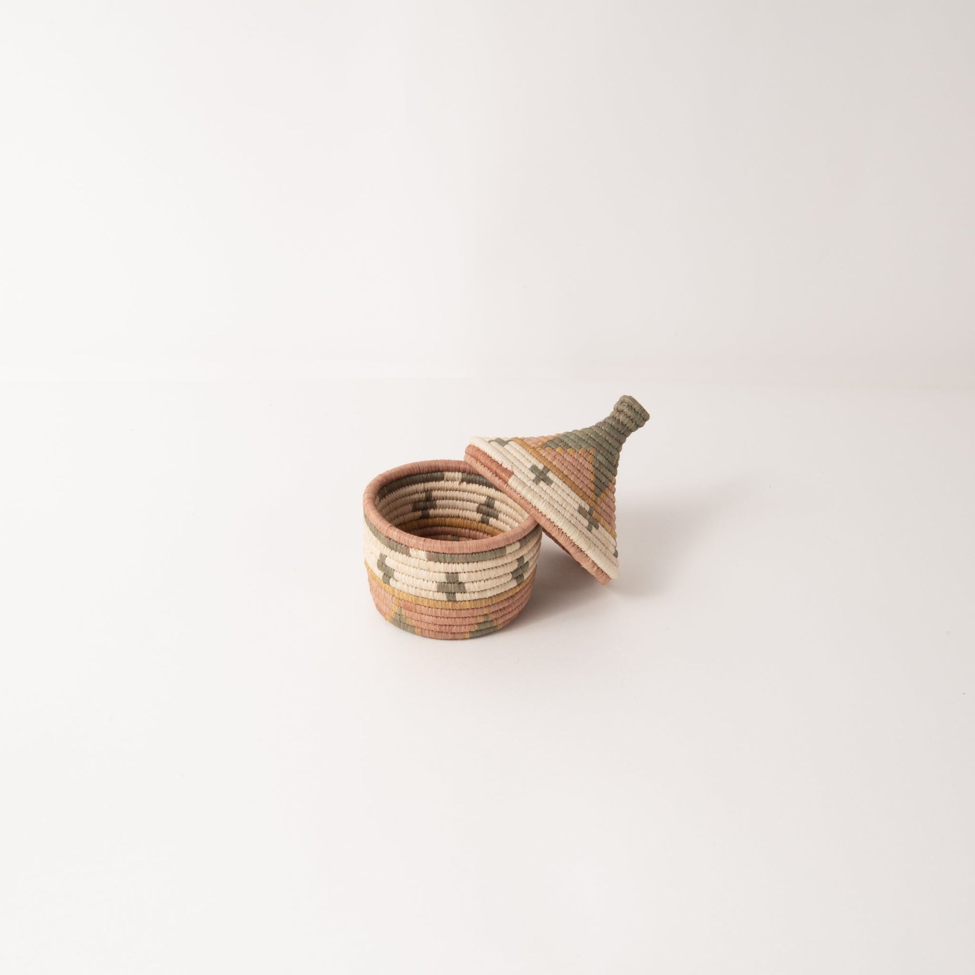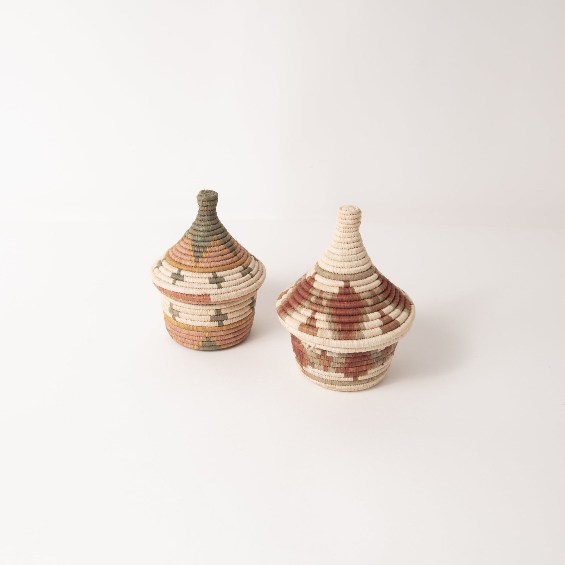 In Western Uganda, these sweet, pointy-topped baskets are traditionally used as decorative vessels to hold coffee beans. When visitors arrive to a home, hosts offer them a coffee bean or two to chew on to reenergize them after a long journey. Part of the Elevate Collection, the 2025 annual small batch basket collection.