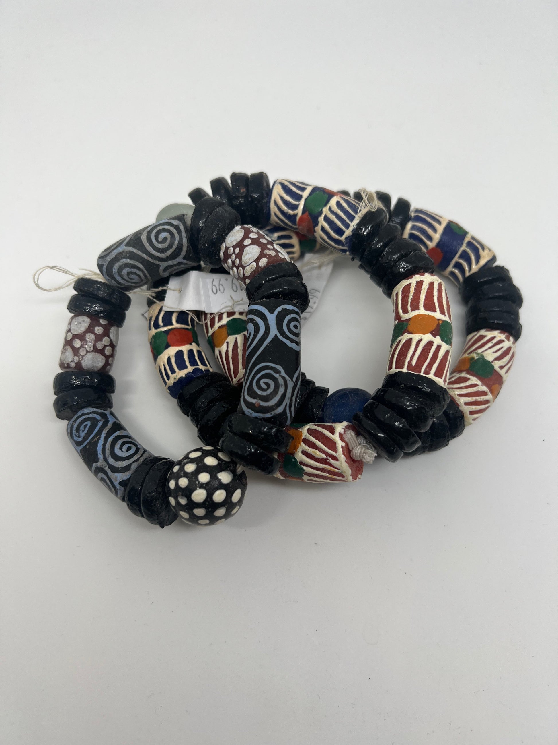 Our Bracelets are the perfect addition to any wrist. Crafted with recycled glass beads from Ghana, they are both stylish and environmentally friendly. The stretchy material ensures they are comfortable and will fit most sizes.