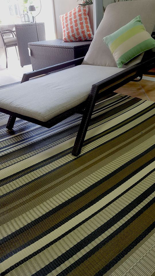 Whether your decor is in warm tones, cool tones, bold or subtle tones, there is a Stripes rug perfect for you. The simple designs and sophisticated colors make these recycled plastic floor covering ideal for any space, indoor or out. Easy to care for and with a one-year color guarantee, this is the rug for you!