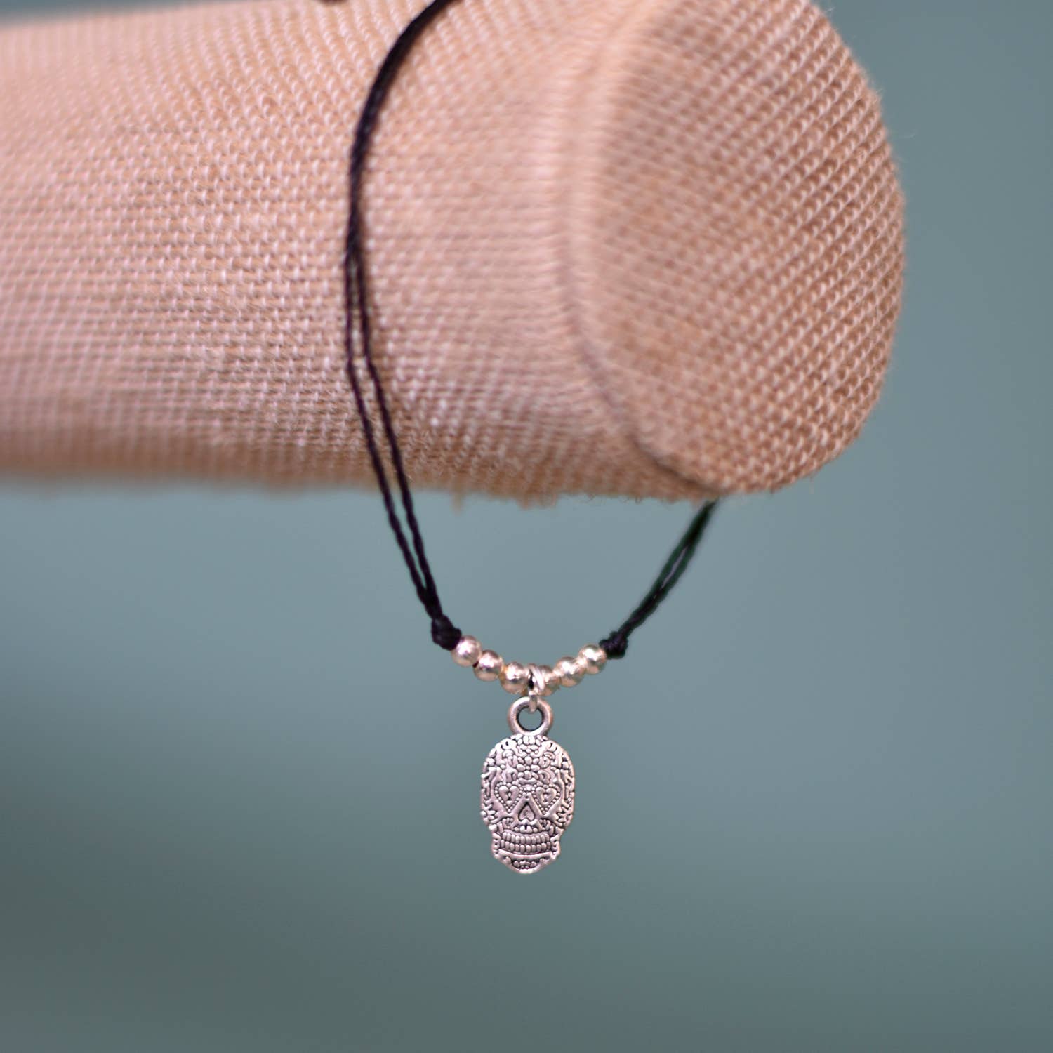 This fair trade String Bracelet is made from colorful string with a silver metallic day of the dead sugar skull symbol at the center. Each bracelet features a pull string slip knot closure to make them easy to wear. Stack them or wear it separately. Comes in assorted colors.