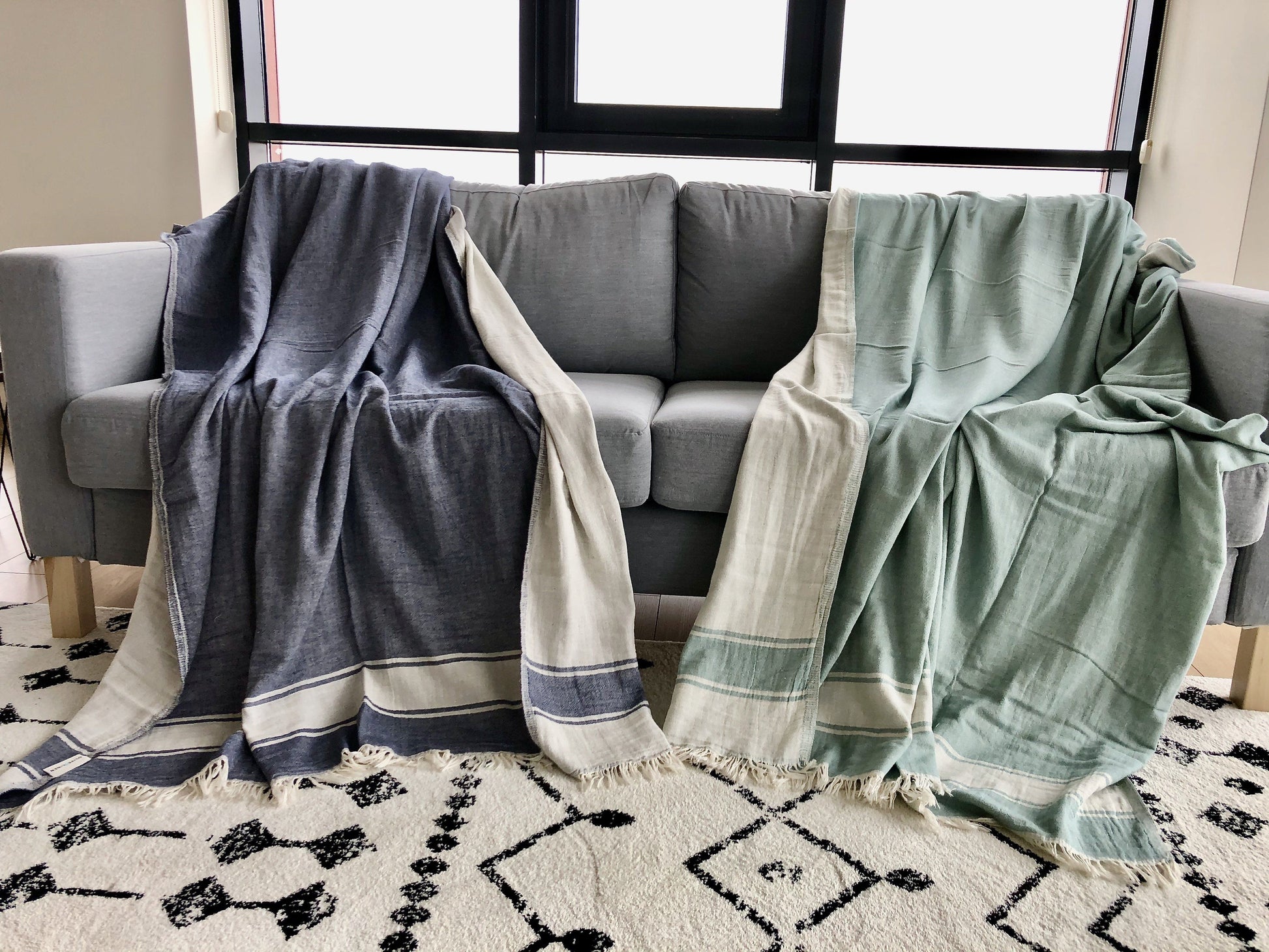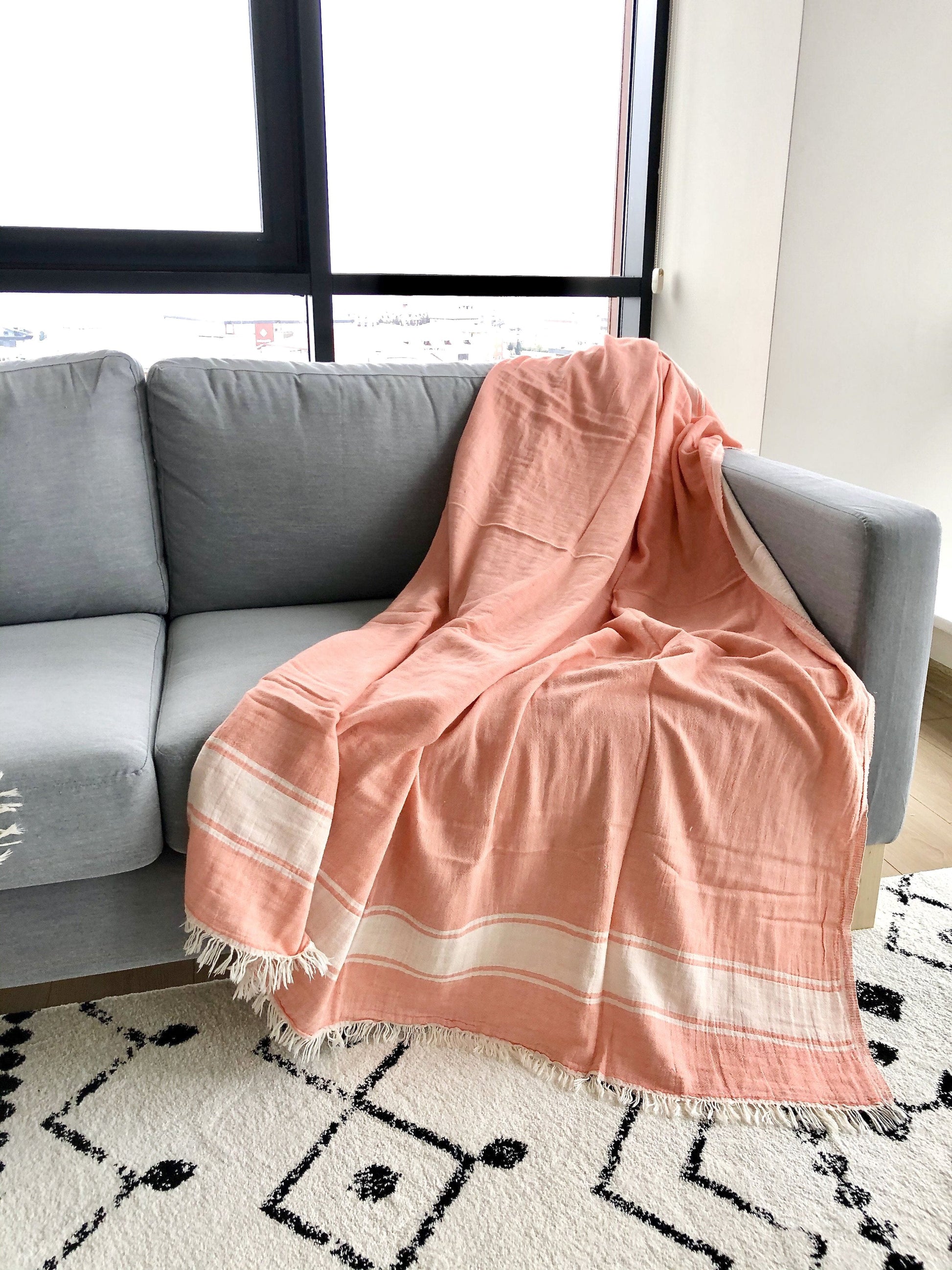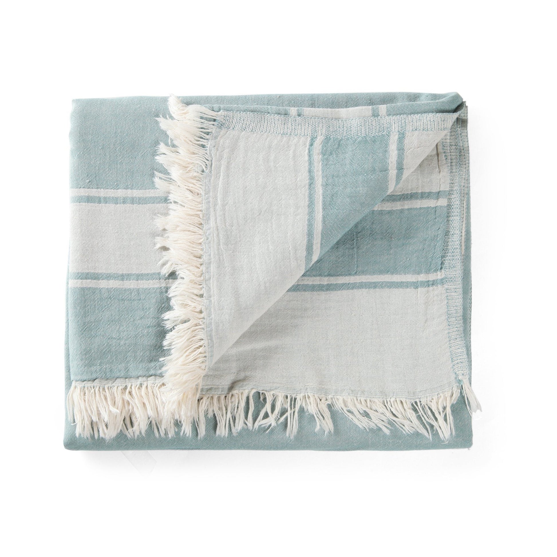 Expertly hand crafted from 2 ply gauze fabric woven from premium long-staple Turkish cotton, the Summer Throw is reversible with contrasting colors on each side.