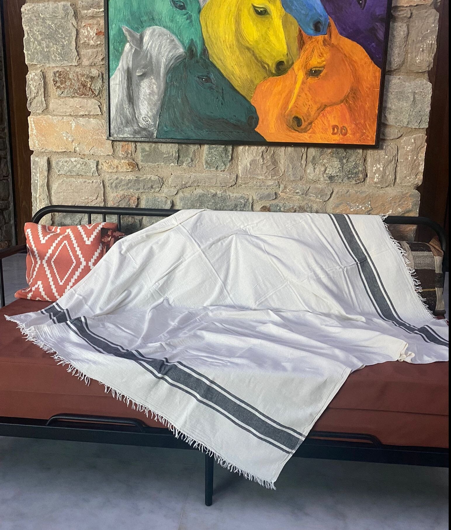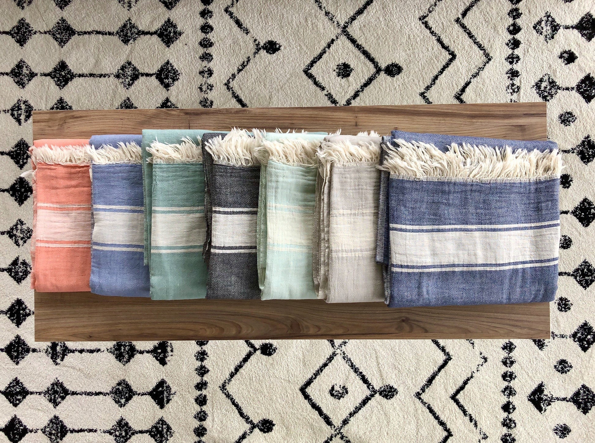 - Naturally soft texture and frayed edges add a relaxed appeal