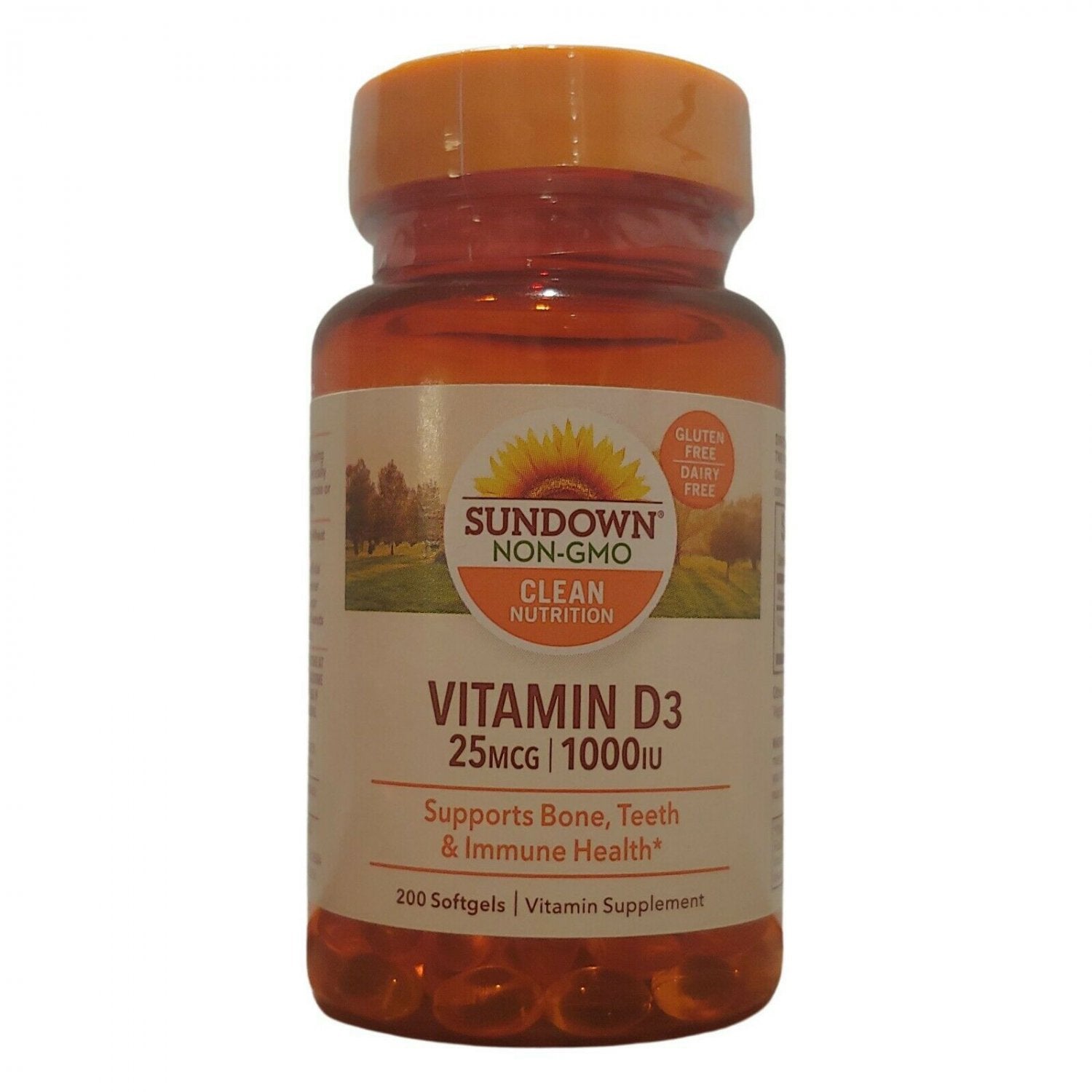 Sundown Naturals, Vitamin D3, 25 Mcg (1,000 IU), 200 Softgels
