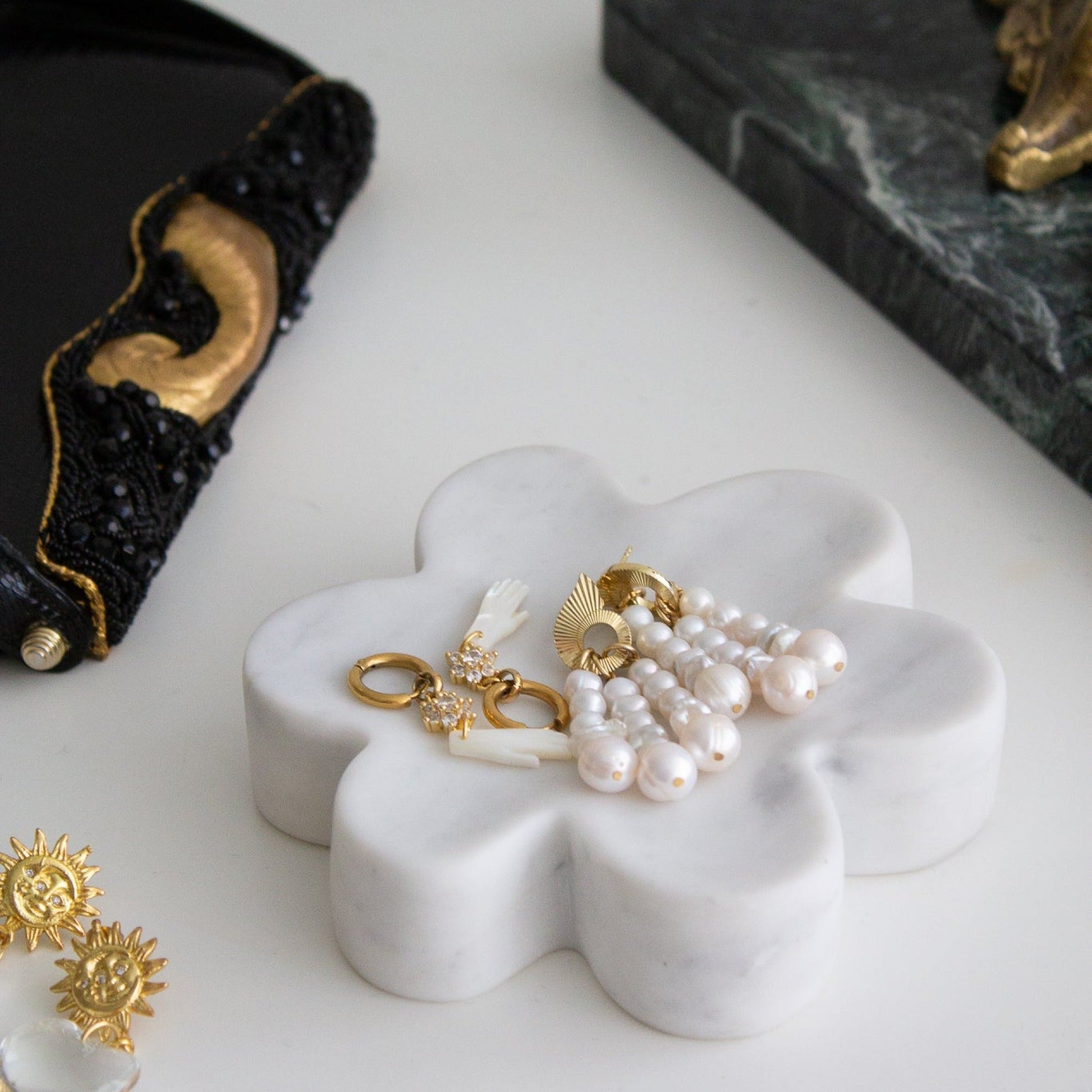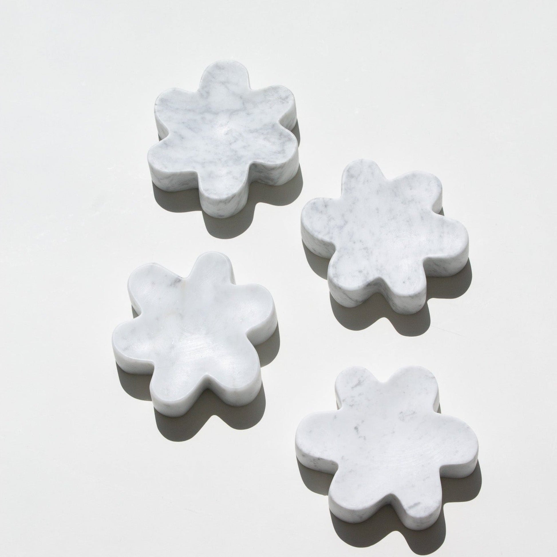 We have teamed up with New York based jewelry brand NOTTE, to create a limited edition jewelry catchall. The original Superbloom Catchall, is made using one of Italy's most iconic marbles: White Carrara. Inspired and named after one of NOTTE's signature designs, the marble follows the same whimsical silhouette of the Superbloom pendant. The brands aim to introduce an intentional piece for your space that is both functional and ornamental while still embodying both brands’ ethos. The piece is fabricated by hand in a honed finish, making it is silky to the touch and is sustainably made by using off-cuts from past projects. details + notes size: 5 x 5 x 1 1/4 in material: marble | quarried in italy | stone grains will vary from piece to piece pop over to our "questions?" section for care instructions