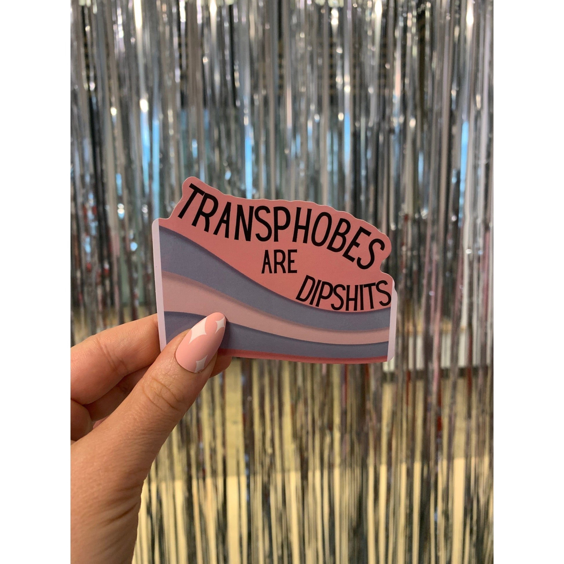 Show off your support for the LGBTQ+ community with our Transphobes Are Dipshits die cut vinyl sticker. The glossy finish and UV protection make it perfect for decorating laptops, water bottles, bikes, and more. Makes a unique and empowering gift for your activist friends!