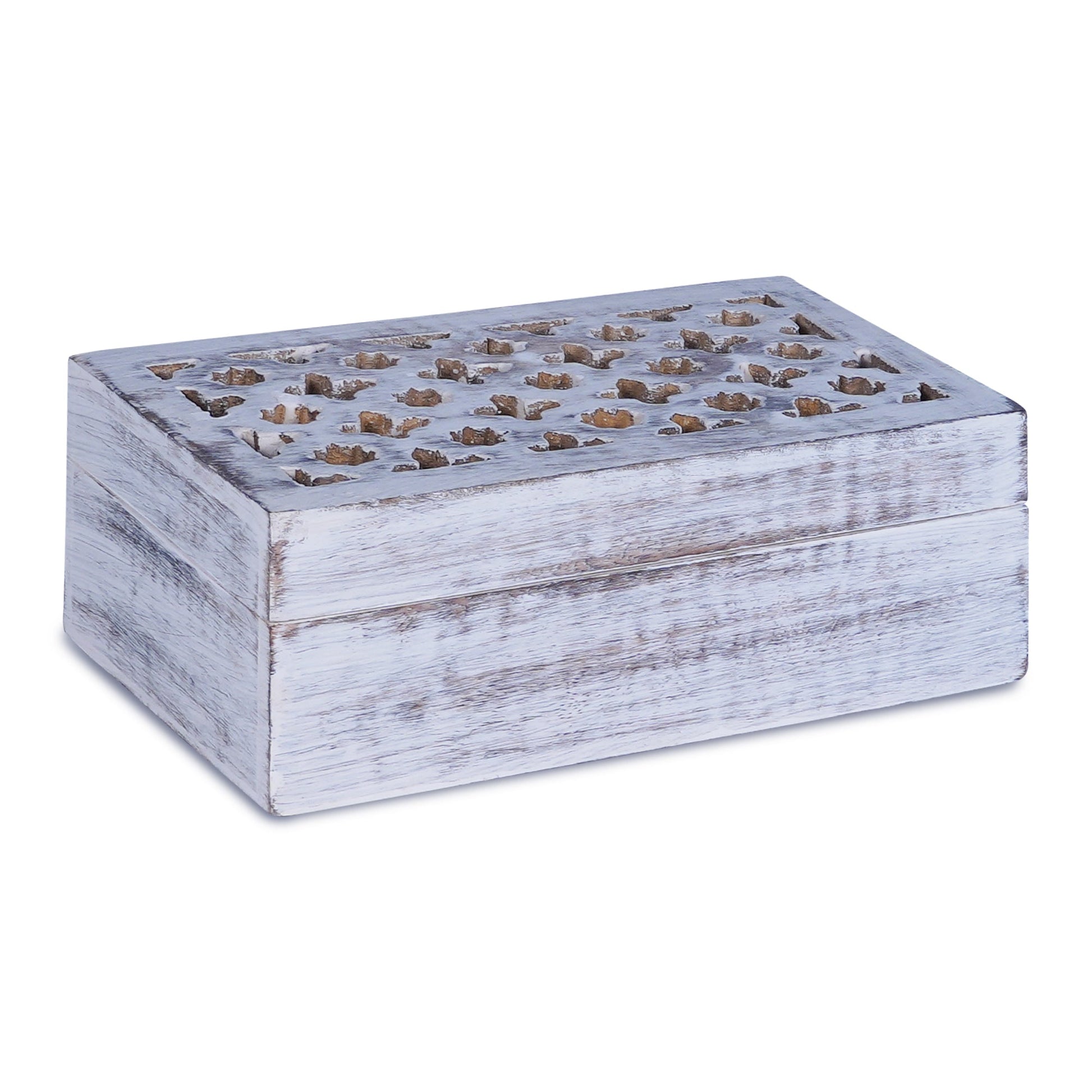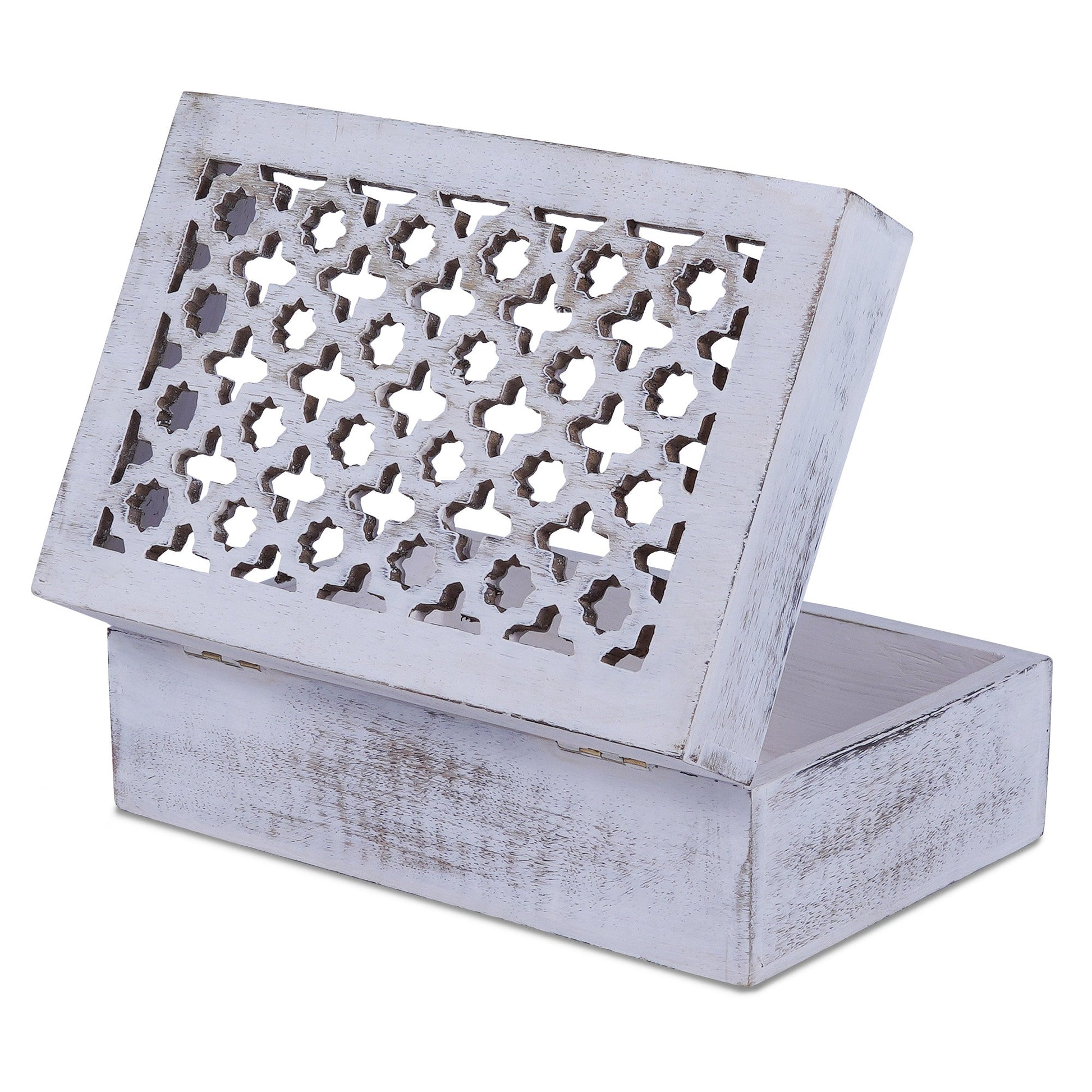 Mela Artists “Trellis” in Mango Wood Distressed White Medium Wood Box with Lid