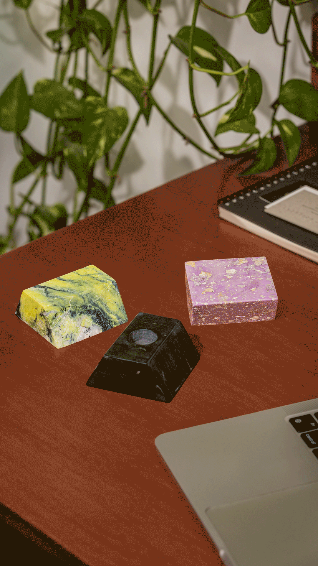 Triangle Gemstone puzzle / 3piece candelabra Black onyx, Serpentine, Lila Fosfosiderita