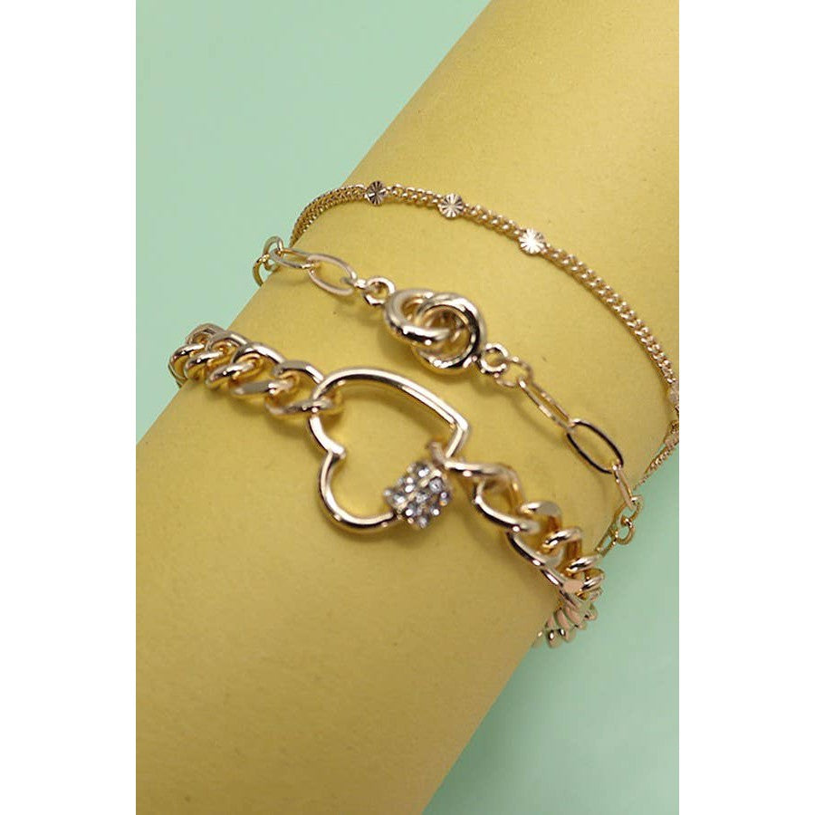 Trio Layer Heart Charm Bracelet, a symbol of love and style that adds a touch of romance to your accessory collection.